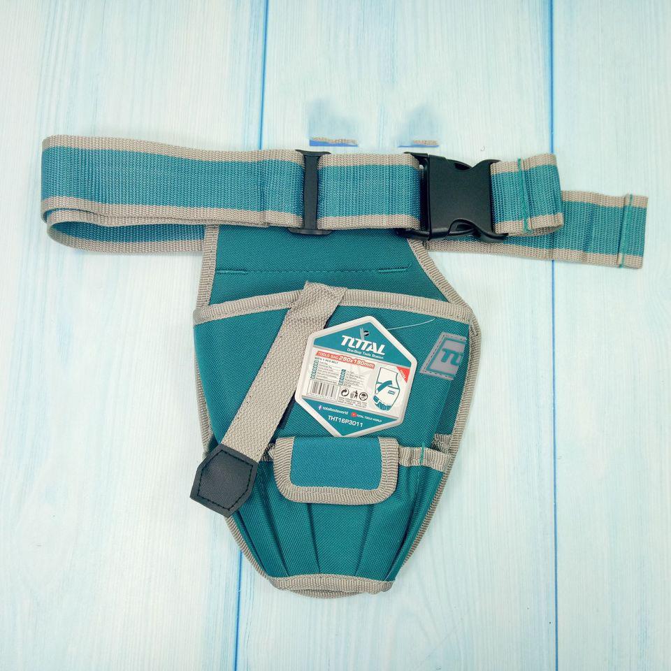 Thương hiệu đồ nghề và máy móc Total ngày càng khẳng định vị thế của mình trên thị trường, cạnh tranh thị phần với những nhãn hiệu có danh tiếng xưa giờ luôn. Total sẽ chứng minh hàng rẻ nhưng có chất lượng tốt là có thật! Total tools - Không cần bỏ số tiền lớn nhưng vẫn có cho mình những đồ nghề chất lượng. Từ những món đồ nghề đơn giản như búa, tuốc nơ vít, lục giác, cờ lê mỏ lết… được sử dụng nhiều trong gia đình cho đến những máy móc dùng điện và pin Lithium-Ion như máy khoan, máy đục bê tông, máy cưa lọng, máy cắt sắt, máy mài góc… công suất mạnh, hay được sử dụng trong nhiều ngàng công nghiệp nặng. Tất cả sản phẩm do Total sản xuất đếu khá là chất lượng và có mức giá rẻ, không như các ông lớn khác là Makita, Stanley… sản phẩm tuy tốt nhưng có giá thánh khá là đắt! Bạn thắc mắc vì sao mà công cụ - dụng cụ Total có giá rẻ ư?! Vì họ không tốn bất cứ tiền quảng cáo, quảng bá thương hiệu nào cả, từ đó mà giá thành sản phẩm rẻ! Thông số kĩ thuật -Mã sản phẩm : THT16P3011 -Nhà sản xuất: Total -Kích thước: L290 × W190mm. Kèm 1 đai thắt thắt lưng -Chất liệu : polyeste 600D. Tải trọng tối đa: 8kg -1 túi lớn chứa máy khoan dùng pin -5 túi phía trước chứa mũi khoan và mũi vít. 40/T