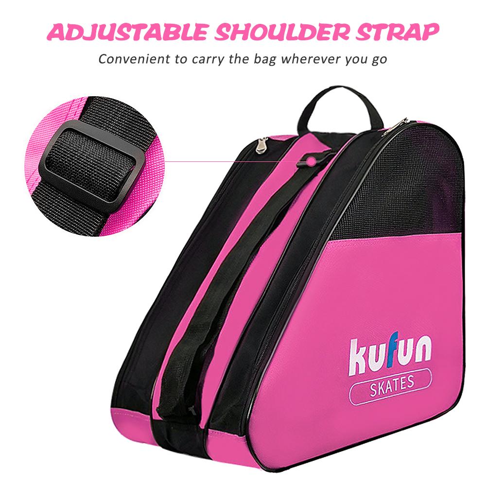 The skate carry bag includes three compartments to provide large capacity for storing your skates, and skating accessories. Features: Tear-resistant oxford cloth with reinforced seams for durability. Three compartments provide large storage space and keep