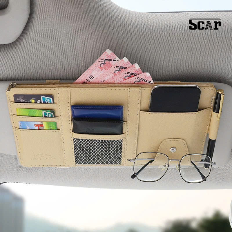 Tấm Che Nắng Xe tổ chức da thẻ Bút đa túi túi lưu trữ Giá giữ Kính râm Kính mắt Clip #shorts
