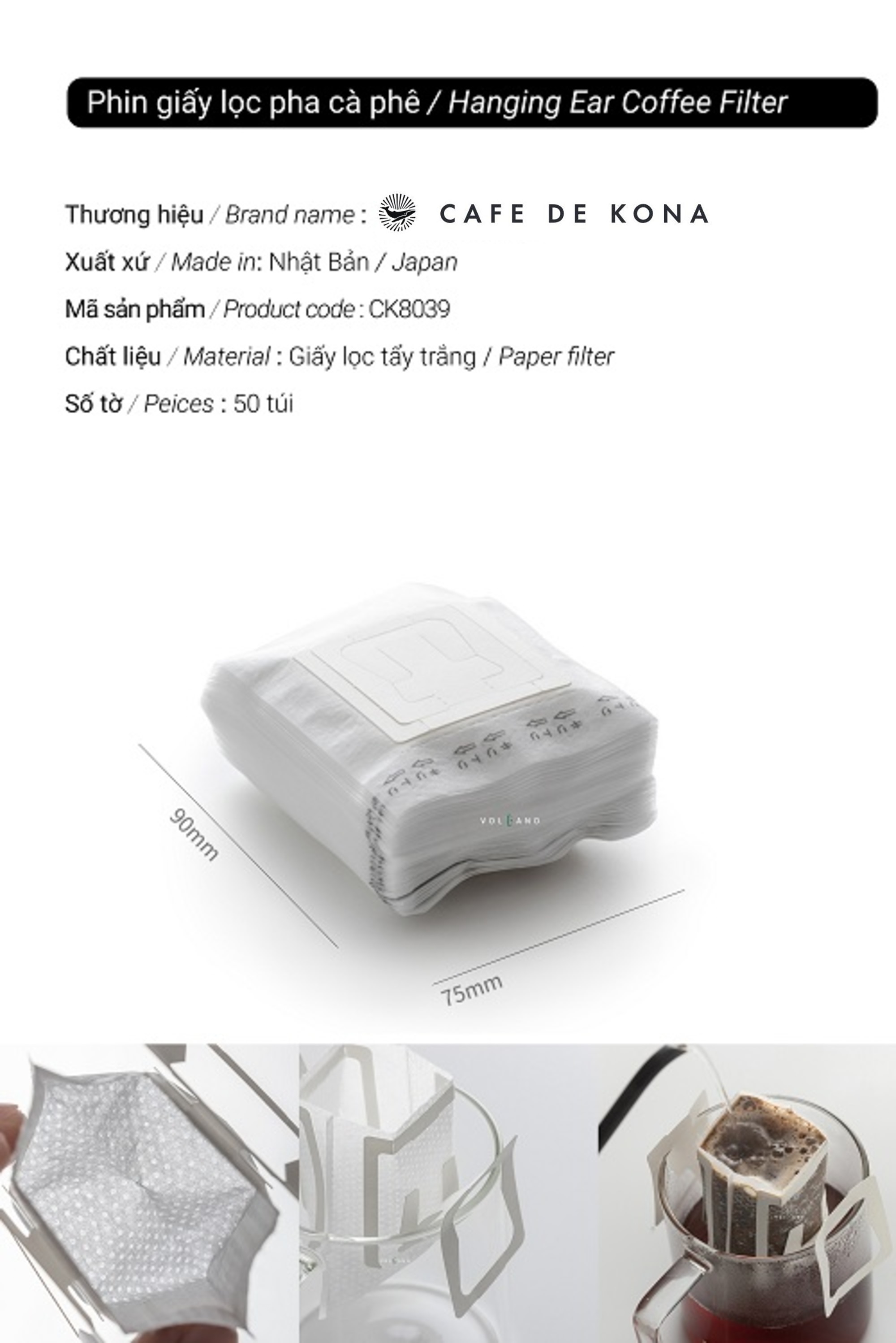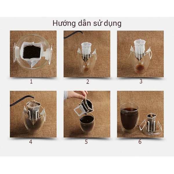 Túi lọc được đặt vào giữa ly. Chỉ đơn giản bằng việc mở rộng tai của phin và gài lên miệng ly.Với màng lọc có tính hữu dụng cao được làm từ những sơi vải không dệt siêu mịn.