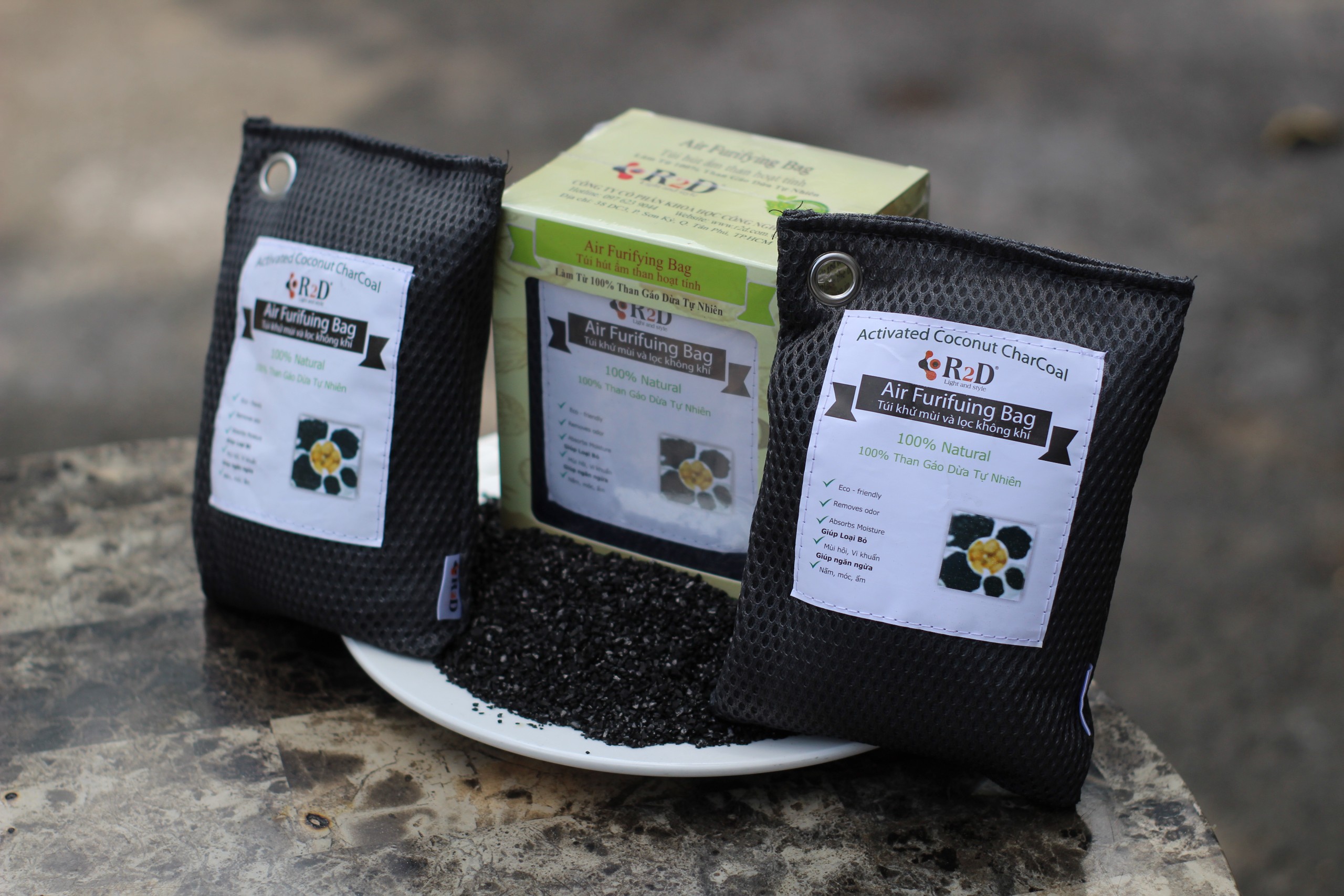 ✨Túi hút ẩm than hoạt tính gáo dừa khử mùi và lọc không khí cho xe hơi chính hãng R2D (hộp 2 túi Lớn)