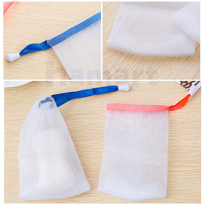 ✨Túi Lưới Đựng Xà Phòng Tạo Bọt Xà Bông Tắm 2 Lớp Có Dây Rút Treo Tường Tiện Lợi Nhiều Màu
