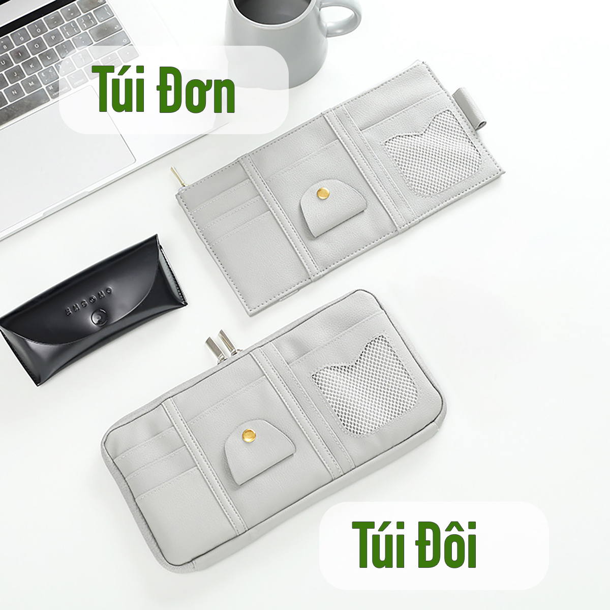 - Túi nhỏ gọn treo vào tấm chắn nắng của xe, được chia nhiều ngăn tiện dụng đựng thẻ, giấy tờ, mắt kính, bút viết, điện thoạ
