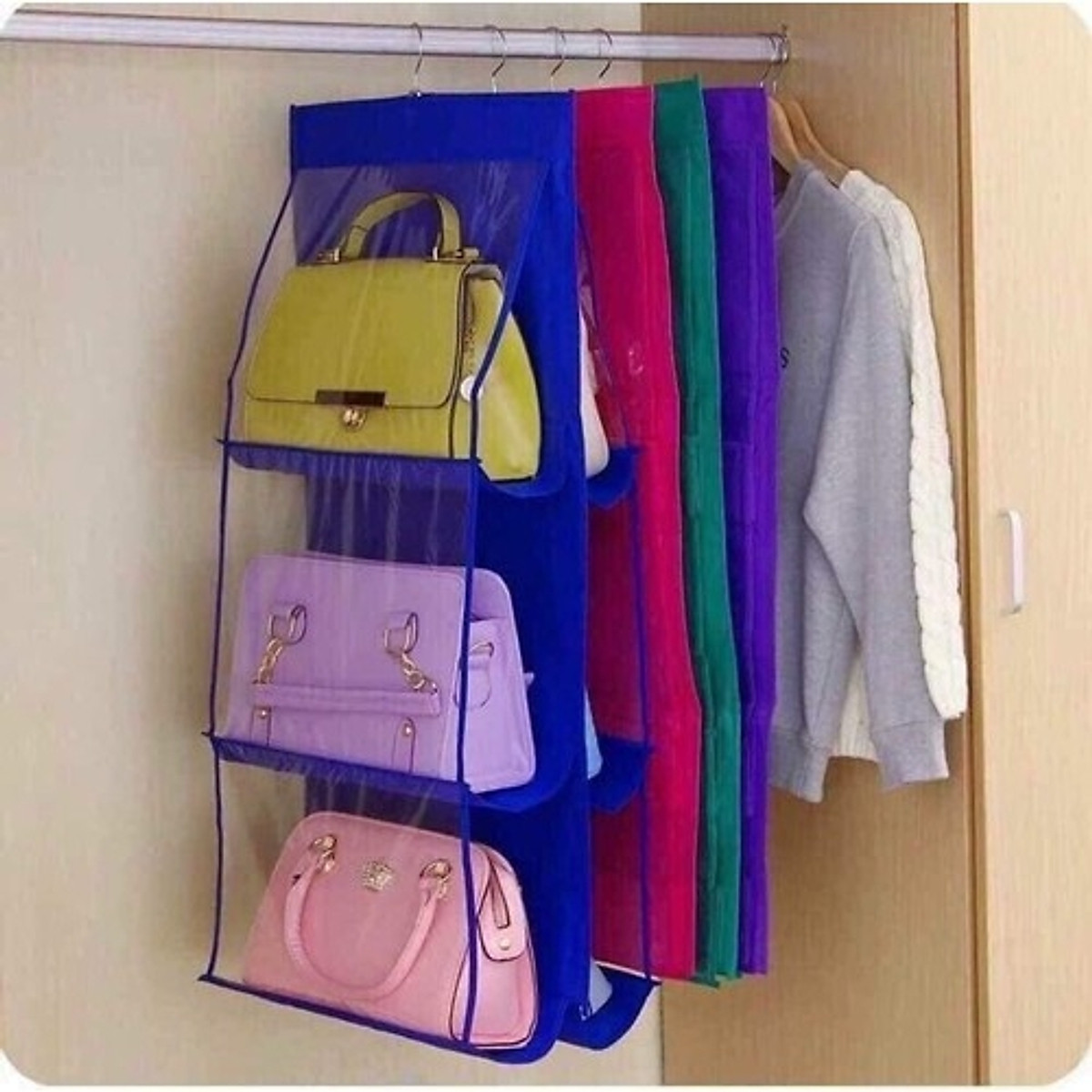 Thiết kế thông minh, dạng như móc treo quần áo, có thể treo trong tủ quần áo, giúp bạn giữ túi xách một cách gọn gàng ngăn nắp, lại giúp chống bụi cực tốt. Phần móc treo chịu lực tốt, bạn có thể treo được tới 6 giỏ xách một lần. Một mặt của túi được thiết kế nhựa PVC dẻo trong suốt giúp bạn có thể nhìn được sản phẩm bên trong được luôn, nên mỗi khi đi chơi bạn có thể dễ dàng lựa cho mình chiếc túi phù hợp để phối nhé.
