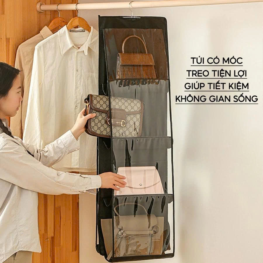 -Túi Treo Túi Xách Đa Năng – 2 Mặt, 6 Ngăn, Trong Suốt, Bền Đẹp, Gọn Tủ
