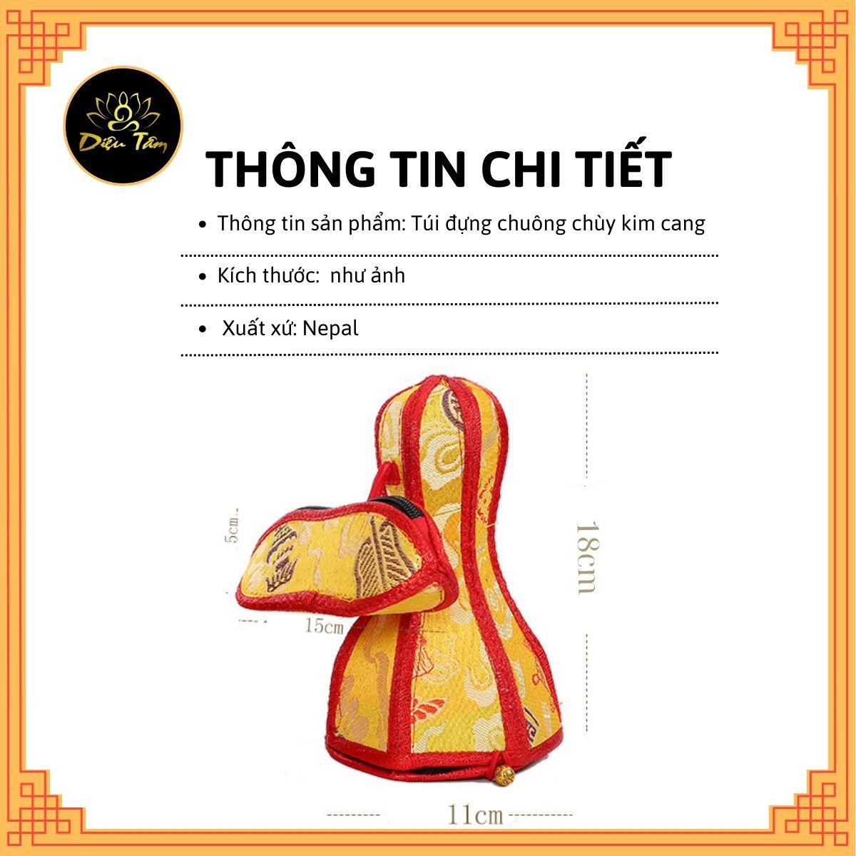 - Kiểu dáng: 5 cạnh Túi đựng chuông chày kim cang là hàng thủ công Nepal. Vì là sản phẩm thủ công nên có chỗ thô, mong quý hiền hữu thông cảm! Chuông chày kim cang được sử dụng trong cầu nguyện và nghi lễ của các học viên Phật giáo Tây Tạng. Chuông Dorje Vajra này tượng trưng cho hạnh phúc, từ bi và trí tuệ. Những chiếc chuông này cũng rất quan trọng trong Ấn Độ giáo, và chuông có ý nghĩa văn hóa khác nhau tùy từng nơi.
