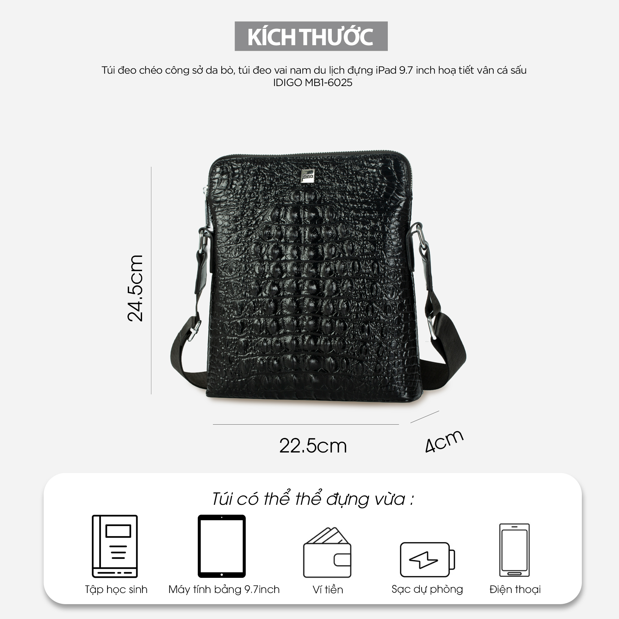 ✨Túi xách công sở da thật cao cấp, túi đeo chéo nam đựng IPAD 9.7 inch họa tiết vân cá sấu nổi bật IDIGO MB1 - 6025