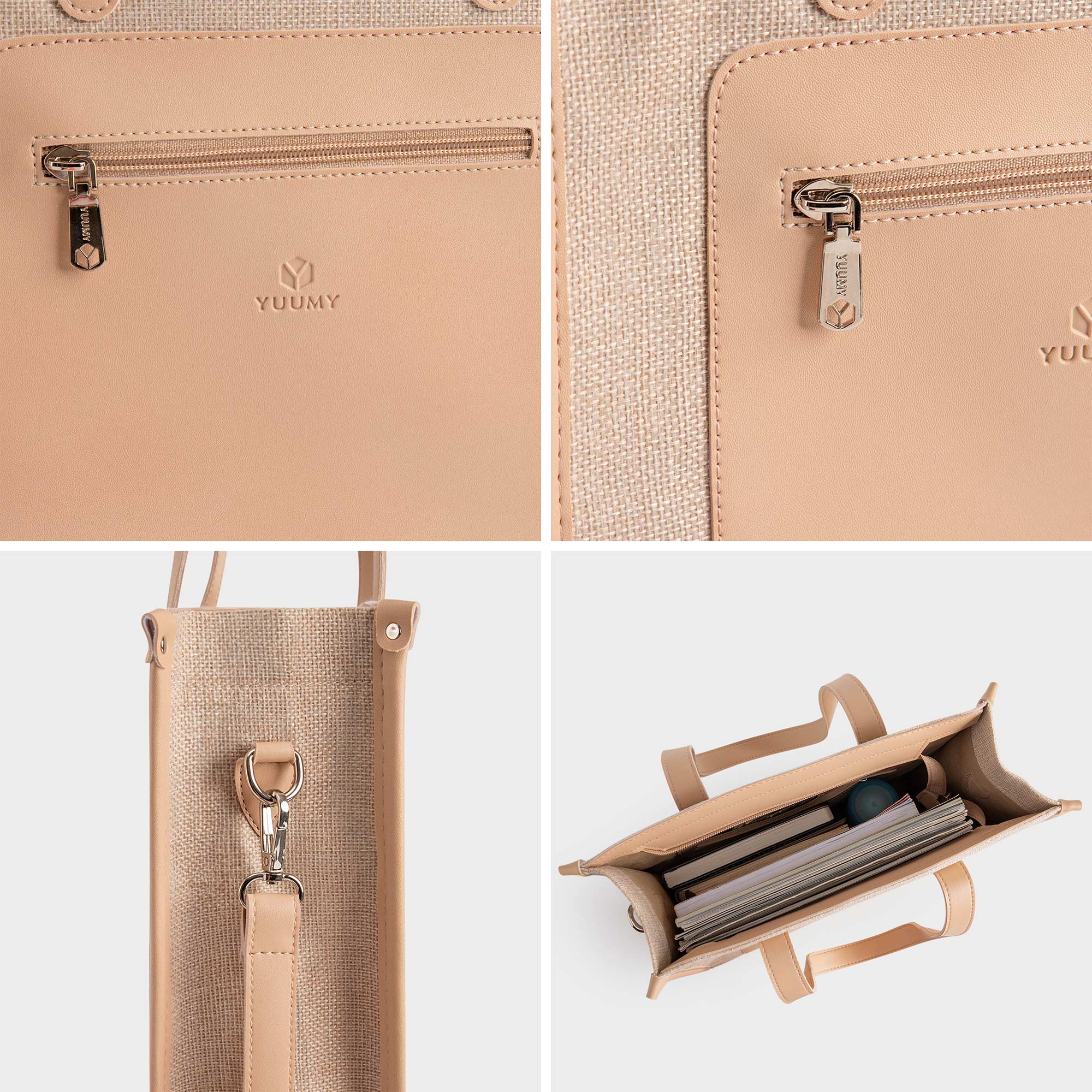 Túi xách cối phối da Yuumy Seasand YTX47 thiết kế theo phong cách tối giản không cầu kỳ, phức tạp. Sản phẩm chú trọng tính tiện dụng, ngăn chứa rộng rãi có thể đựng vừa tài liệu khổ A4, sổ tay và các vật dụng cá nhân khác. Túi có dáng đứng tạo cảm giác gọn gàng, tinh tế. Sản phẩm có khoá kéo đóng mở ngăn chính, quai cầm gập đôi để có thể xách và cả dây đeo vai tiện lợi. Sản phẩm có nhiều gam màu hiện đại và tính ứng dụng cao phù hợp với mọi phong cách thời trang và hoàn cảnh sử dụng của khách hàng.