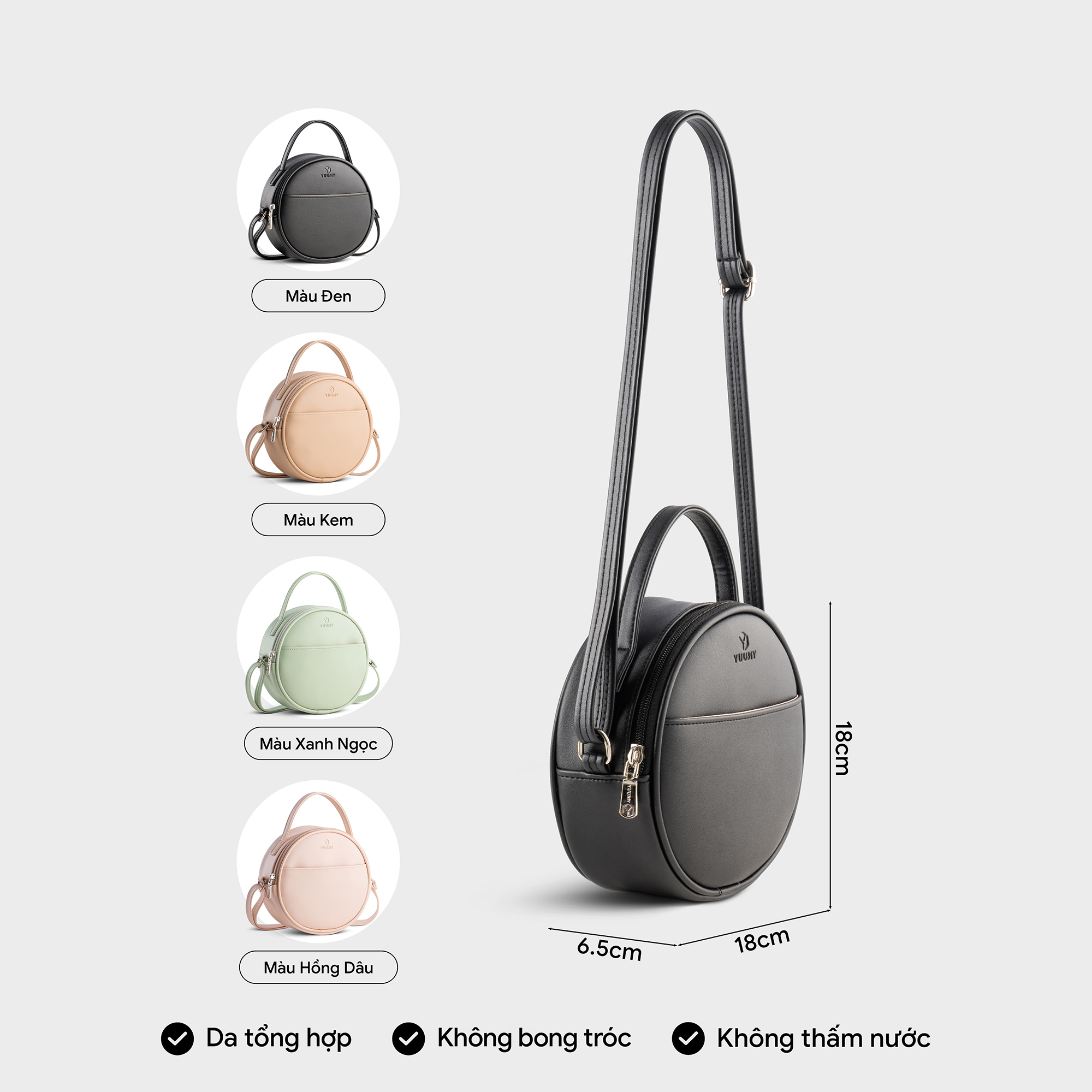 Túi đeo chéo da nữ dáng tròn phối ngăn Yuumy Seasand YN261 với thiết kế dáng tròn độc đáo mang lại vẻ mới mẻ và trẻ trung, tạo điểm nhấn tinh tế cho trang phục. Kích thước nhỏ gọn nhưng vẫn đảm bảo đủ không gian cho các vật dụng thiết yếu hàng ngày, phù hợp cho cả đi làm, đi chơi hay dạo phố. Được làm từ chất liệu da tổng hợp cao cấp, túi không chỉ bền đẹp mà còn dễ dàng bảo quản, chống thấm nước và giữ được vẻ ngoài sang trọng theo thời gian. Với màu sắc trang nhã, dễ kết hợp với nhiều loại trang phục, từ công sở thanh lịch đến dạo phố năng động. Dây đeo điều chỉnh được giúp bạn dễ dàng thay đổi độ dài theo sở thích, mang lại sự thoải mái tối đa trong quá trình sử dụng.