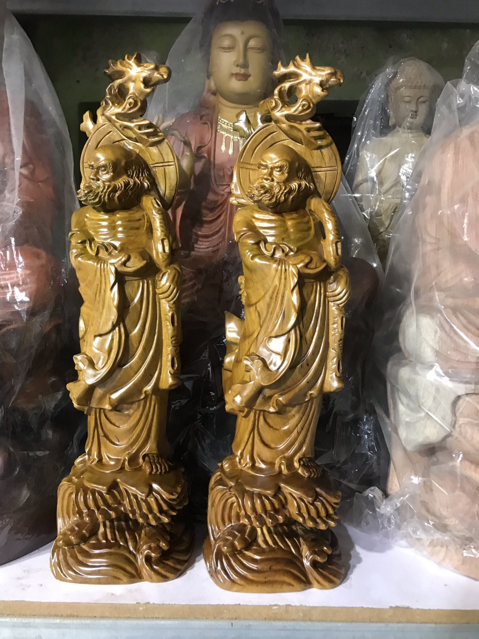 Cặp tượng đạt ma sư tổ và tượng tố công được làm bằng chất liệu gỗ hương đá tự nhiên 100% _ Kích thước 40×12×11cm _ Cặp tượng tố công và đạt ma được làm
