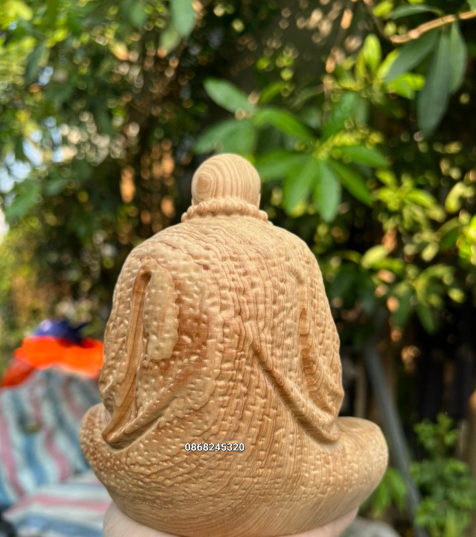 Mua tại Tiktok_ Tượng đạt ma sư tổ ngồi thiền được làm bằng chất liệu gỗ ngọc am liền khối tự nhiên 100%