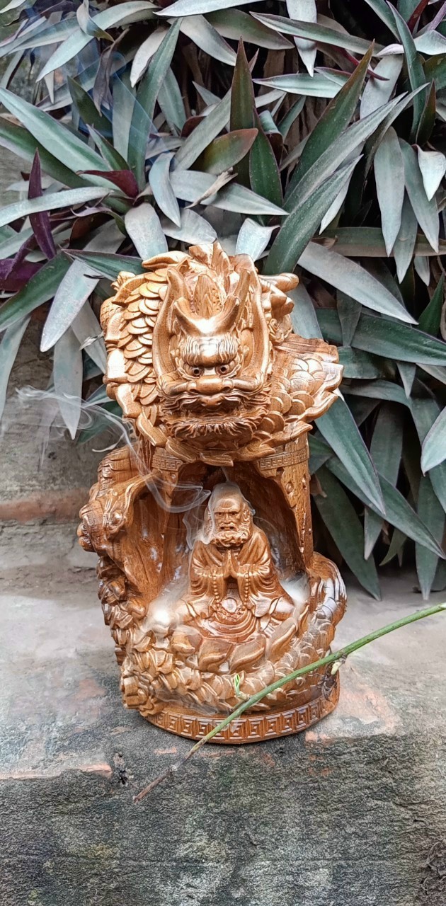 Thưởng trầm và ngắm tác phẩm đỉnh cao. Sư tổ đạt ma ngồi thiền xông trầm gỗ bách xanh | 0389889968