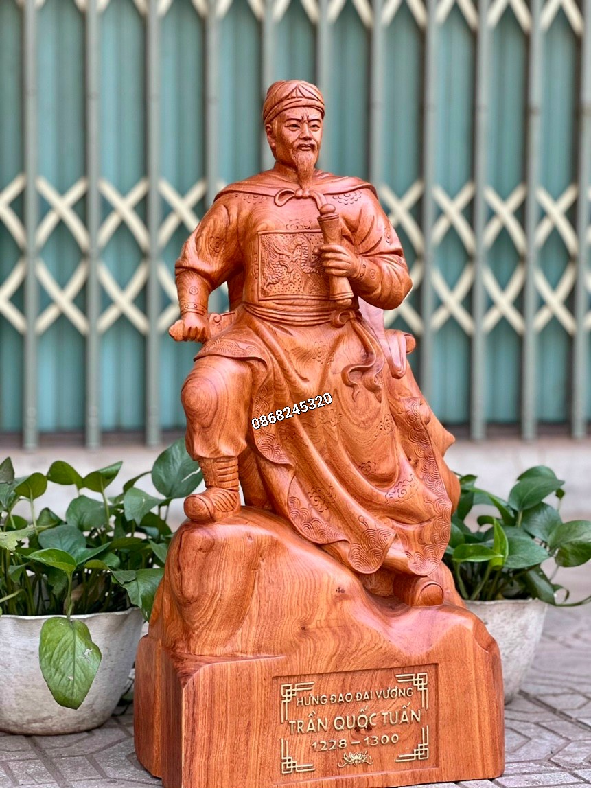 _ Tượng trần quốc tuấn trần hương đạo vương được làm bằng chất liệu gỗ hương đá liền khối tự nhiên 100%