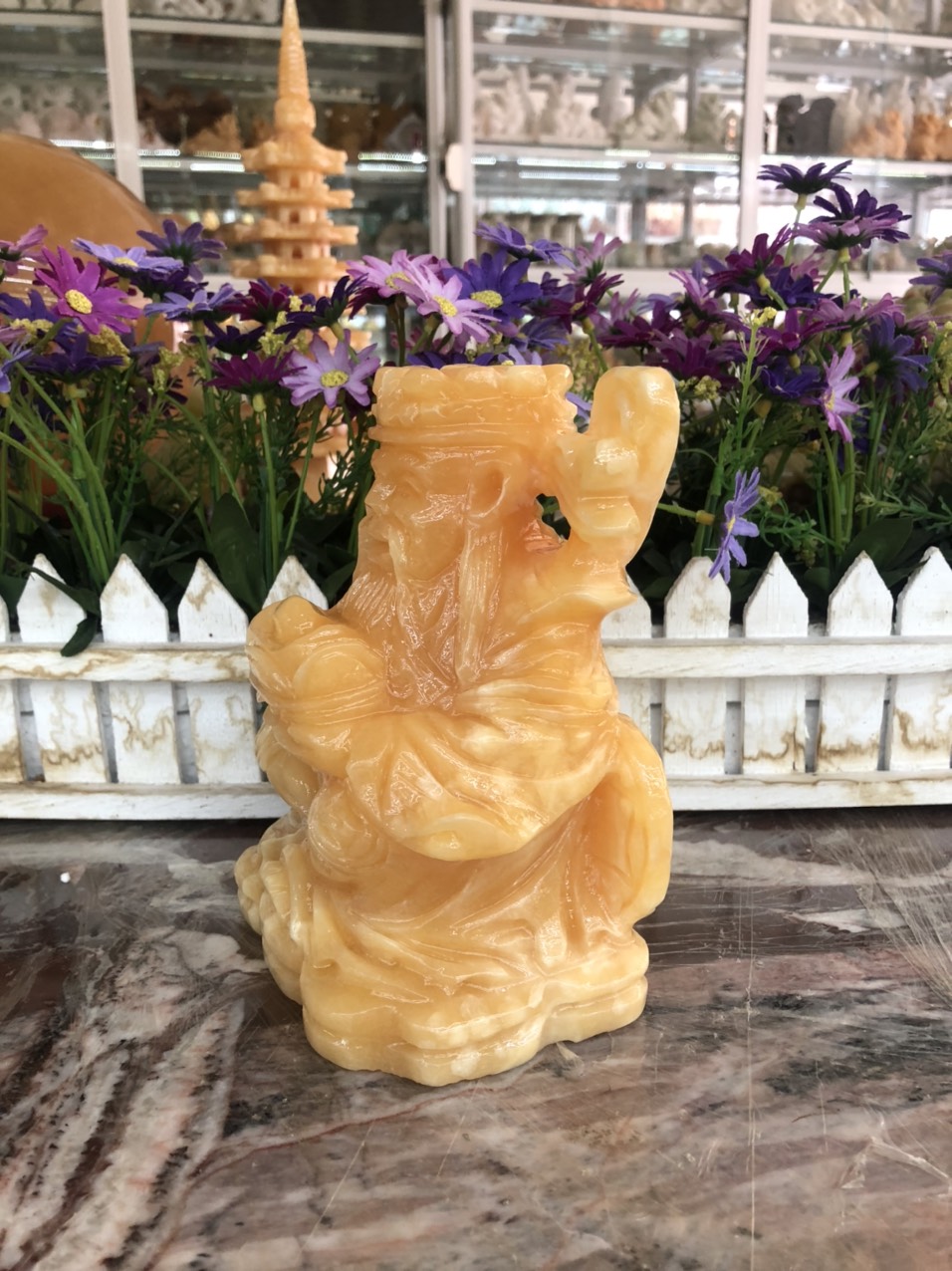 Tượng Phật Bà Quan Âm 2 Mặt đá lưu ly vàng đậm đẹp ĐỂ TRONG XE HƠI hoặc BÀN cao 10cm đk 6cm mệnh KIM mệnh THỔ và THỦY ạ --- Tượng phật bà quan