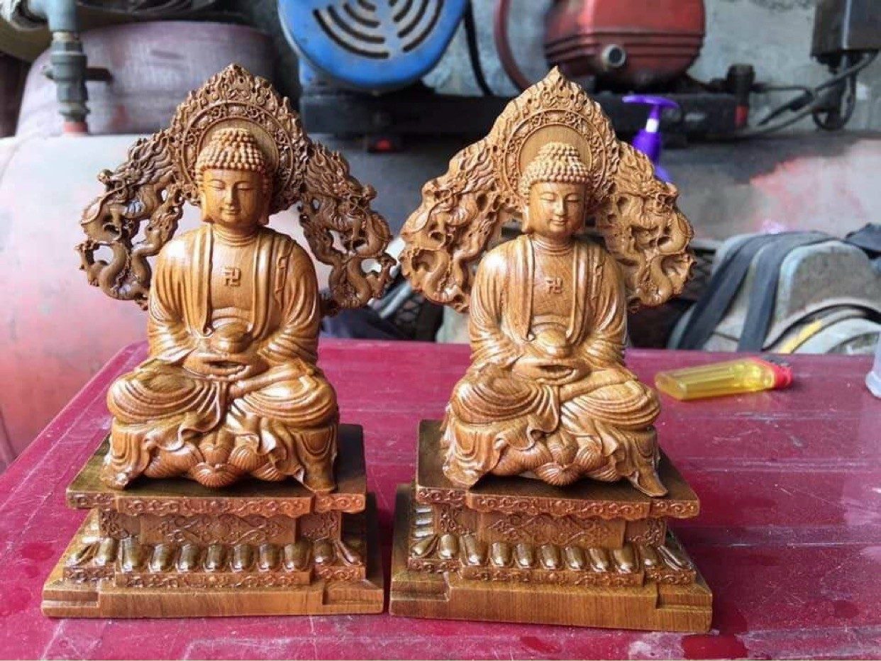 Tượng phật a di đà cao 15 20cm gỗ bách xanh