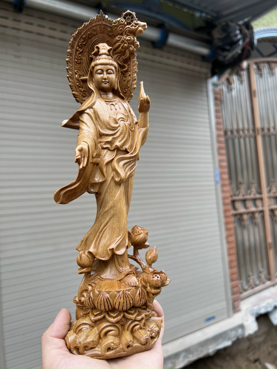 Tượng Phật Bà được chạm khắc vô cùng tỉ mỉ , nổi bật thần thái “ từ bi hỉ xả “ của Phật Bà Quan Âm luôn che chở, cứu giúp chúng sinh. Tượng có