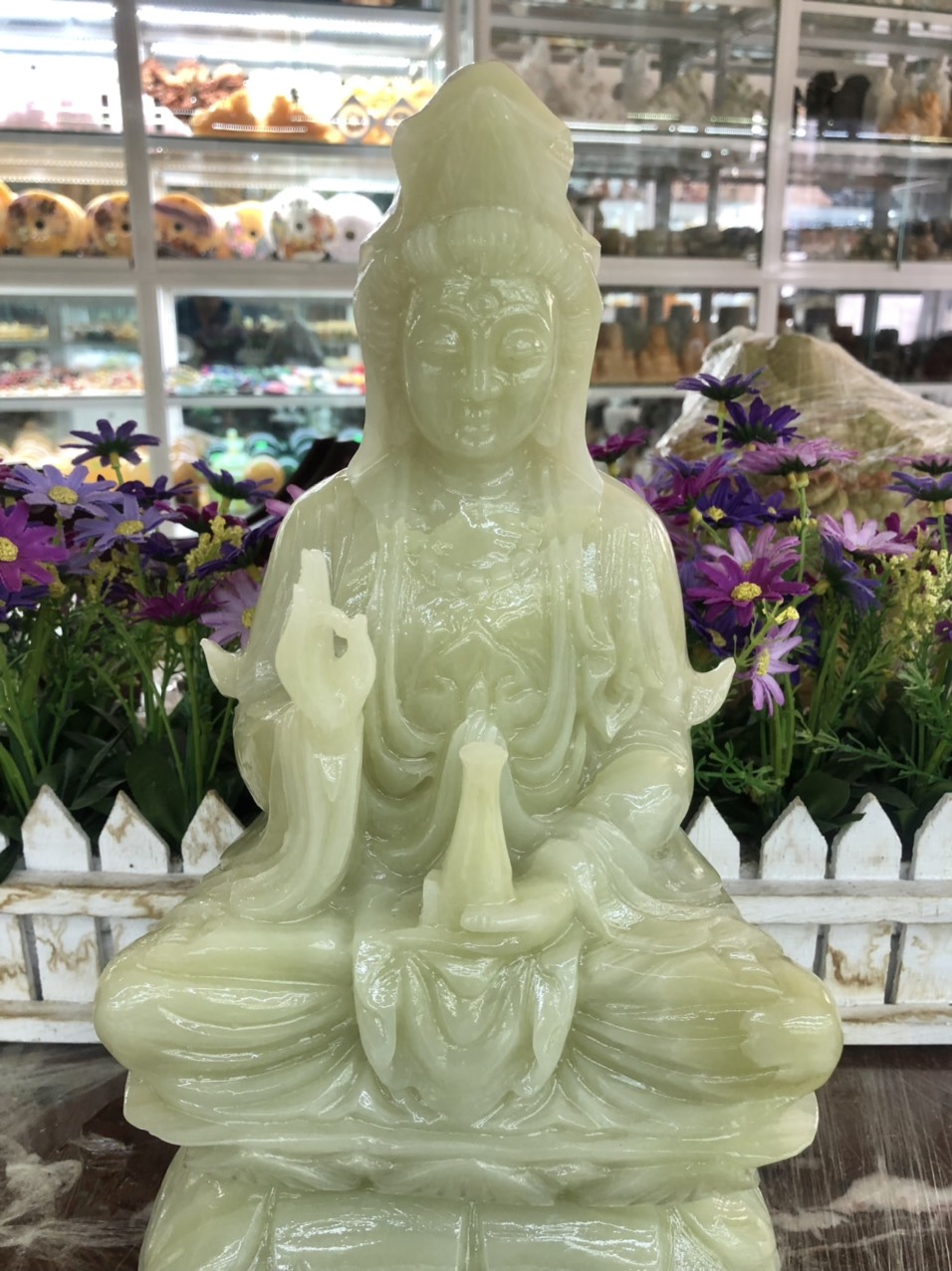 Tượng Phật Bà được chạm khắc vô cùng tỉ mỉ , nổi bật thần thái “ từ bi hỉ xả “ của Phật Bà Quan Âm luôn che chở, cứu giúp chúng sinh. Tượng có