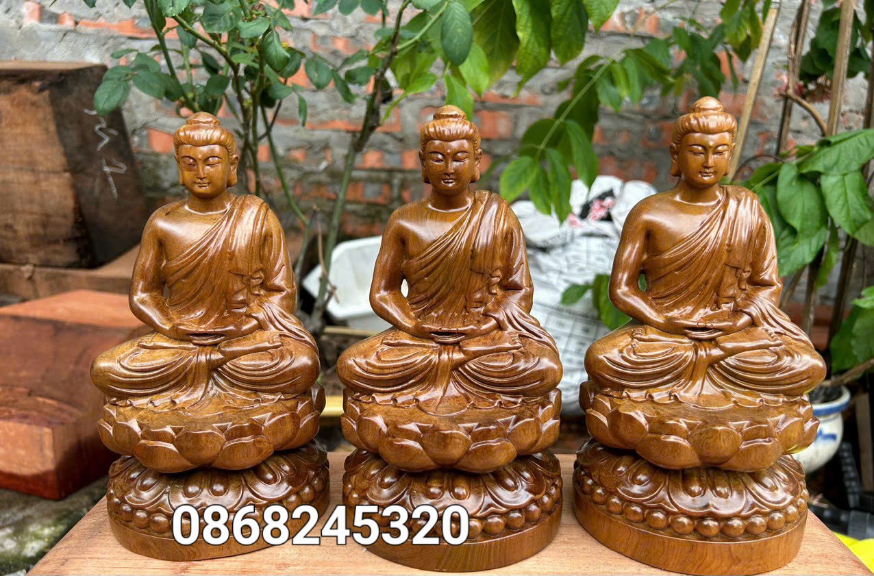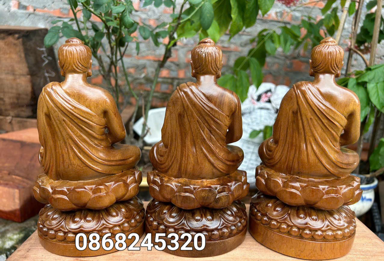 Bộ tượng phật Tây Phương Tam Thánh gỗ bách xanh cao 20cm