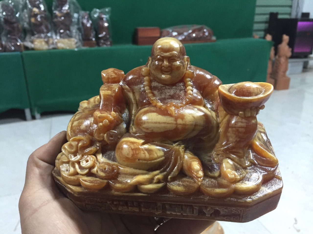 Mua tại TiktokTượng phật di lặc dâng tiền vàng được làm bằng chất liệu gỗ huyết long liền khối tự nhiên 100% Kích thước 15×9×9cm _ Tượng phật di lặc dâng tiền vàng được trạm khắc tỉ mỉ tinh sảo kỳ công .Đi hầu hết tất cả mọi chi tiết góc ngách nội dung hoa văn của tượng đều được ngọt tỉa chỉnh sửa hoàn toàn bằng tay thủ công .Đồng thời tượng được kiểm định kỹ lưỡng như cho vào thẩm sấy cho gỗ khô kiệt .Mục đích trống dập nứt vênh mo mối mọt .Kết hợp với trà nhám đánh giấy giáp nhiều nước cho sạch sẽ ,sờ mát lạnh ,Rồi cho vào phun lót làm bóng mờ để giữ lại mầu sắc vân gỗ tư nhiên .Tượng được làm và hoàn thiện do bàn tay khối óc tài hoa ,Từ những người thợ giàu kinh nghiệm ,Cũng như tay nghề cao trong làng nghề truyền thống