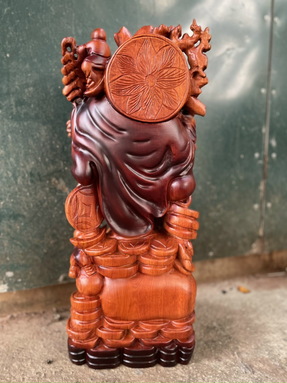 Tượng phật di lặc ngũ phúc được làm bằng chất liệu gỗ hương đá liền khối tự nhiên 100%  Kich thUOC 60×24×15CM _ Tuọng phật di lặc ngũ phúc được trạm khắc vô cùng tỉ mỉ tinh sảo kỳ công .Đi hầu hết tất cả mọi chi tiết góc ngách nội dung hoa văn của tượng đều được ngọt tỉa chỉnh sửa hoàn toàn bằng tay thủ công .Đồng thời tượng được kiểm định kỹ lưỡng như cho vào  thẩm sấy cho gỗ khô kiệt .Mục đích trống dập nứt vênh mo mối mọt  ,kết hợp với trà nhám  ,đánh giấy giáp kỹ nhiều nước ,Rồi cho vào phun lót để giữ lại mầu sắc vân gỗ tự nhiên .Tượng được làm và hoàn thiện do bàn tay khối óc tài hoa ,Từ những người thợ giàu kinh nghiệm ,Cũng như tay nghề cao ,trong làng nghề truyền thống .Chính vì thế tượng phật di lặc đã đáp ứng đầy đủ những tiêu trí ( Đẹp bền rẻ ) Thẩm mỹ nghệ thuật với chất lượng tuyệt vời
