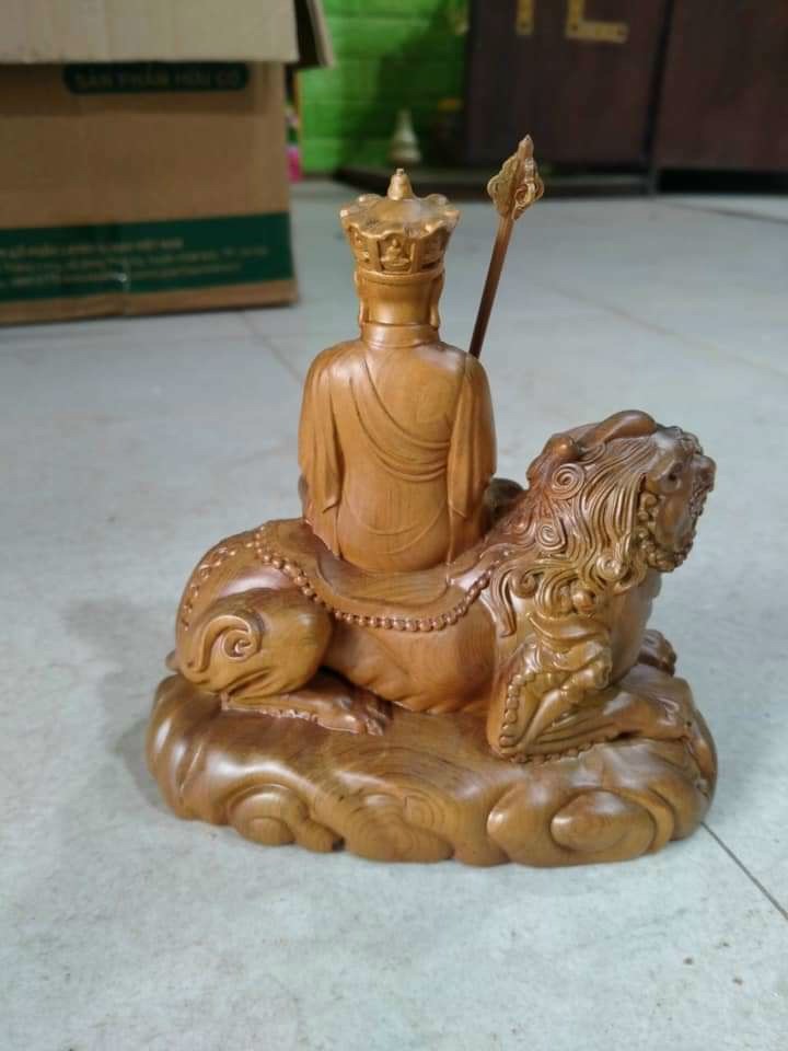 _ Tượng phật địa tạng vương bồ tát cưỡi kỳ lân ,được làm bằng chất liệu gỗ bách xanh tự nhiên 100%
