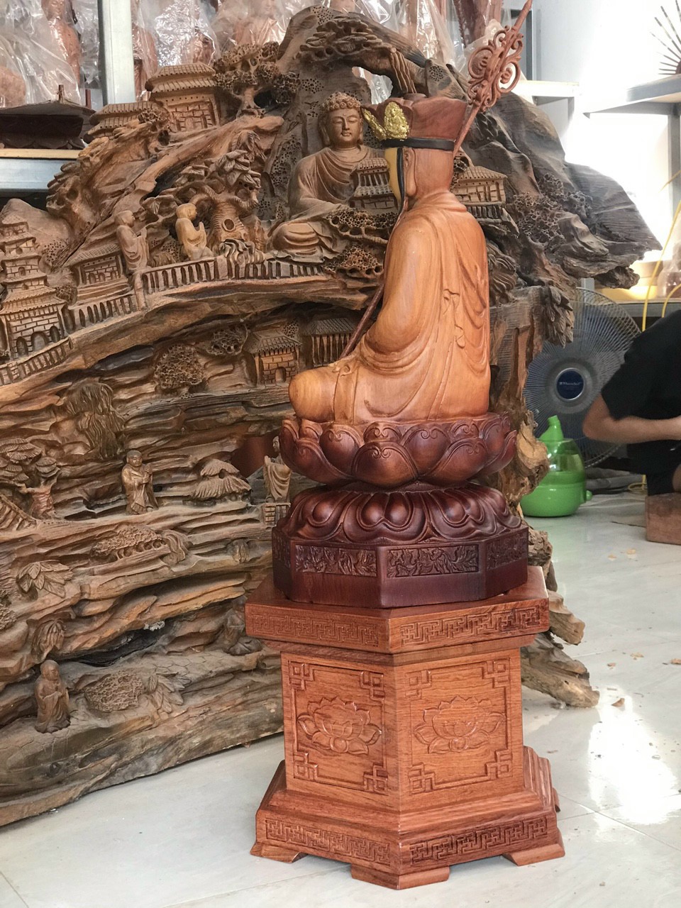 Tượng phật địa tạng vương bồ tát được làm bằng chất liệu gỗ hương đá liền khối tô làm mầu giả cổ Kích thước 50×25×25cm _ Tượng phật địa tạng vương bồ tát được trạm khắc tỉ mỉ tinh sảo kỳ công ,Tượng được làm và hoàn thiện do bàn tay khối óc tài hoa ,Từ những người thợ dầy rặn kinh nghiệm cũng như tay nghề cao trong làng nghề truyền thống .Chính vì thế tượng phật địa tạng vương bồ tát đã đáp ứng đầy đủ những tiêu trí ( Đẹp bền rẻ ) Thẩm mỹ nghệ thuật với chất lượng tuyệt vời