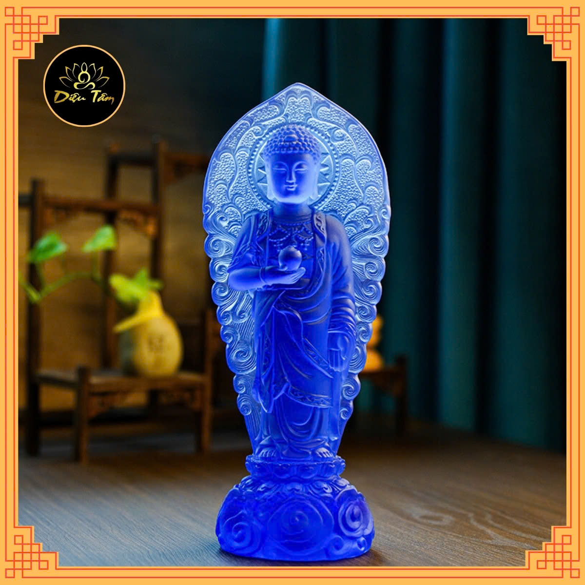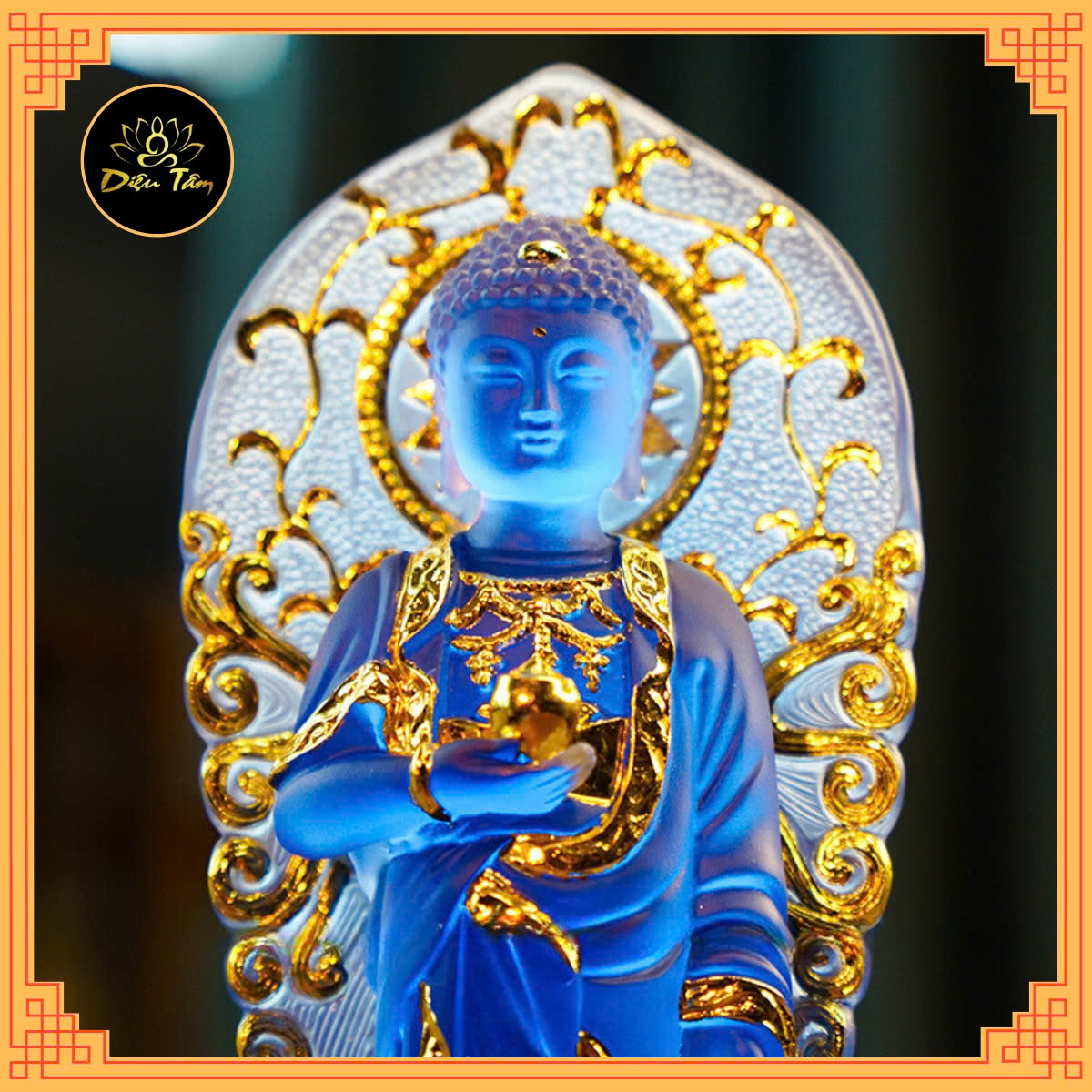 Tượng phật dược sư lưu ly tượng dược sư đứng hào quang xanh dương dát vàng trang trí 23cm phong thủy, thờ cúng Diệu Tâm - Tượng phật dược sư được chế tác thủ công - Tượng phật dược sư có kích thước như ảnh - Tượng phật dược sư làm bằng chất liệu composite giả lưu ly - Tượng phật dược sư có màu xanh dương dát vàng - Sản phẩm chỉ gồm tượng phật không gồm đôn đế, quý khách có thể mua thêm đôn đế, kệ ở shop Phật Dược Sư có lòng bi mẫn vô biên đối với tất cả chúng sinh. Phật Dược Sư hiểu và thông suốt tất cả các y dưpợc của thế gian và xuất thế gian, Ngài có thể chữa t.r.ị tất cả những b.ệ.n.h khổ của chúng sinh, những điên đảo vọng tưởng do tham, sân, si phiền não gây nên. Chính vì vậy tượng phật dược sư là một trong những tượng phật được các gia chủ ưa chuộng nhất lựa chọn để thờ cúng trên bàn thờ. - Những lý do bạn nên thỉnh tượng dược sư Phật Dược sư có thể chữa t.r.ị các loại b.ệ.n.h của chúng sinh Thần chú Phật Dược sư mang năng lực chữa lành Thỉnh nguyện phật Dược sư sẽ giúp bạn nhận được sự ban phước từ Ngài Ngắm tượng phật Dược sư giúp bạn tăng trưởng tín tâm vào Ngài Phật Dược sư có 12 đại nguyện cứu độ chúng sinh - Hướng dẫn vệ sinh tượng phật dược sư Bạn không nhất thiết phải lau tượng mỗi ngày. Chỉ khi nào nhận thấy tượng Phật Dược Sư bị khói bụi bám vào thì mới “tắm” tượng. Dùng một chiếc khăn sạch mới tinh lau tôn tượng theo hướng từ trên xuống cho đến khi sạch sẽ. Không nên xức các loại nước hoa thơm cho tượng Phật Dược Sư. Vì đó là những sản phẩm với hương vị đặc thù tạo ra sự dính mắc, trói buộc và mê đắm cho thế gian, nói chung là “mùi thơm bất tịnh”. #phongthuy #dothocung #bantho #tuongluuly #tuongphat #dophongthuy #dieutam #tuongduocsu #duocsu #trangtri #tuongphatduocsu #duocsuluuly #duocsuluulyquang #mattong