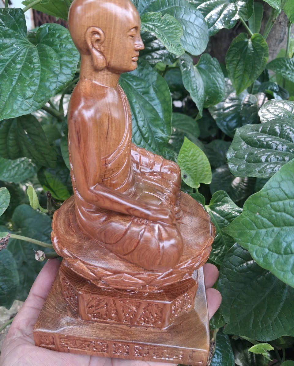✨Tượng phật hoàng trần nhân tông bằng gỗ bách xanh thơm nức cao 20x11cm