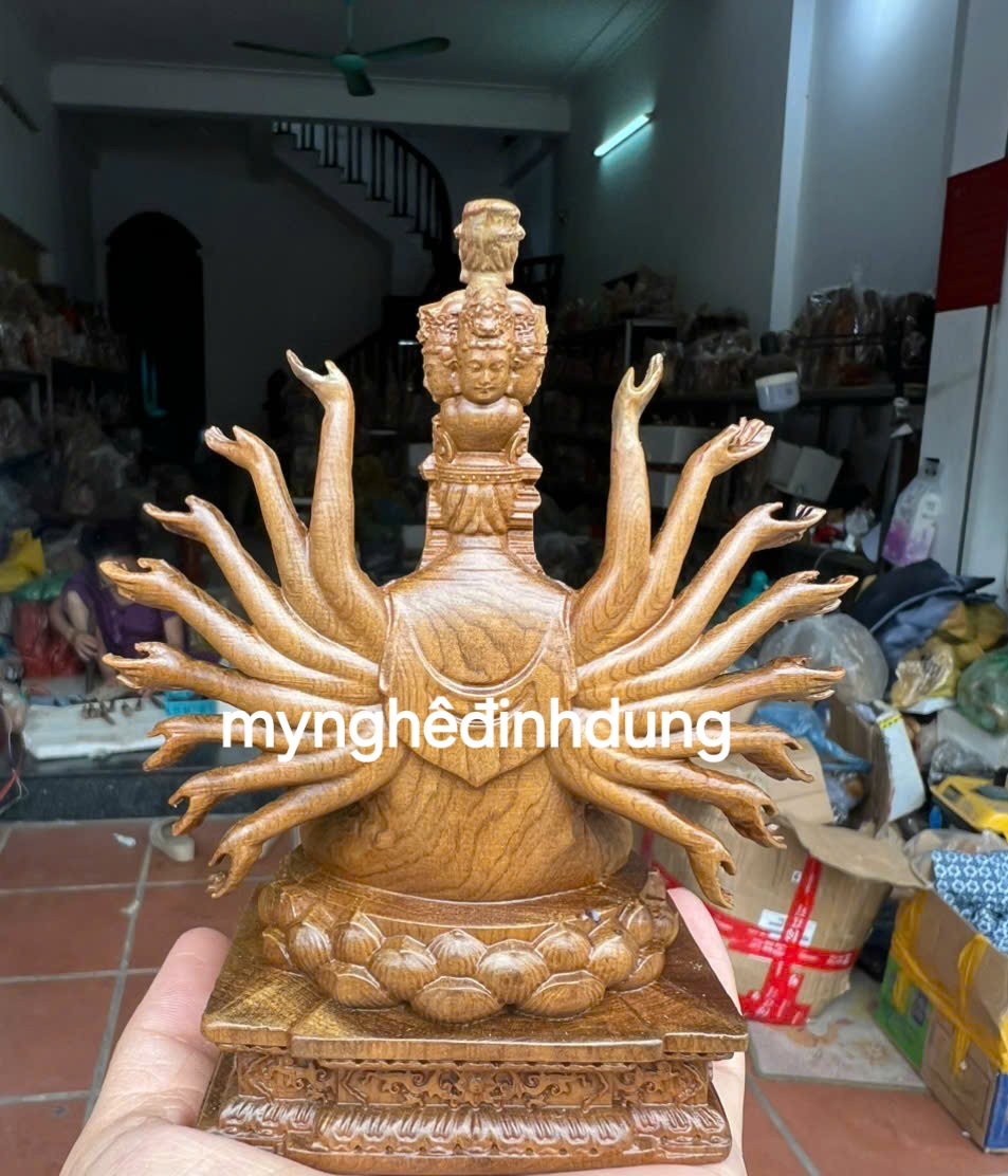 ✨Tượng Phật ngài nghìn mắt nghìn tay bằng gỗ bách xanh thơm nức cao 15x12x7cm