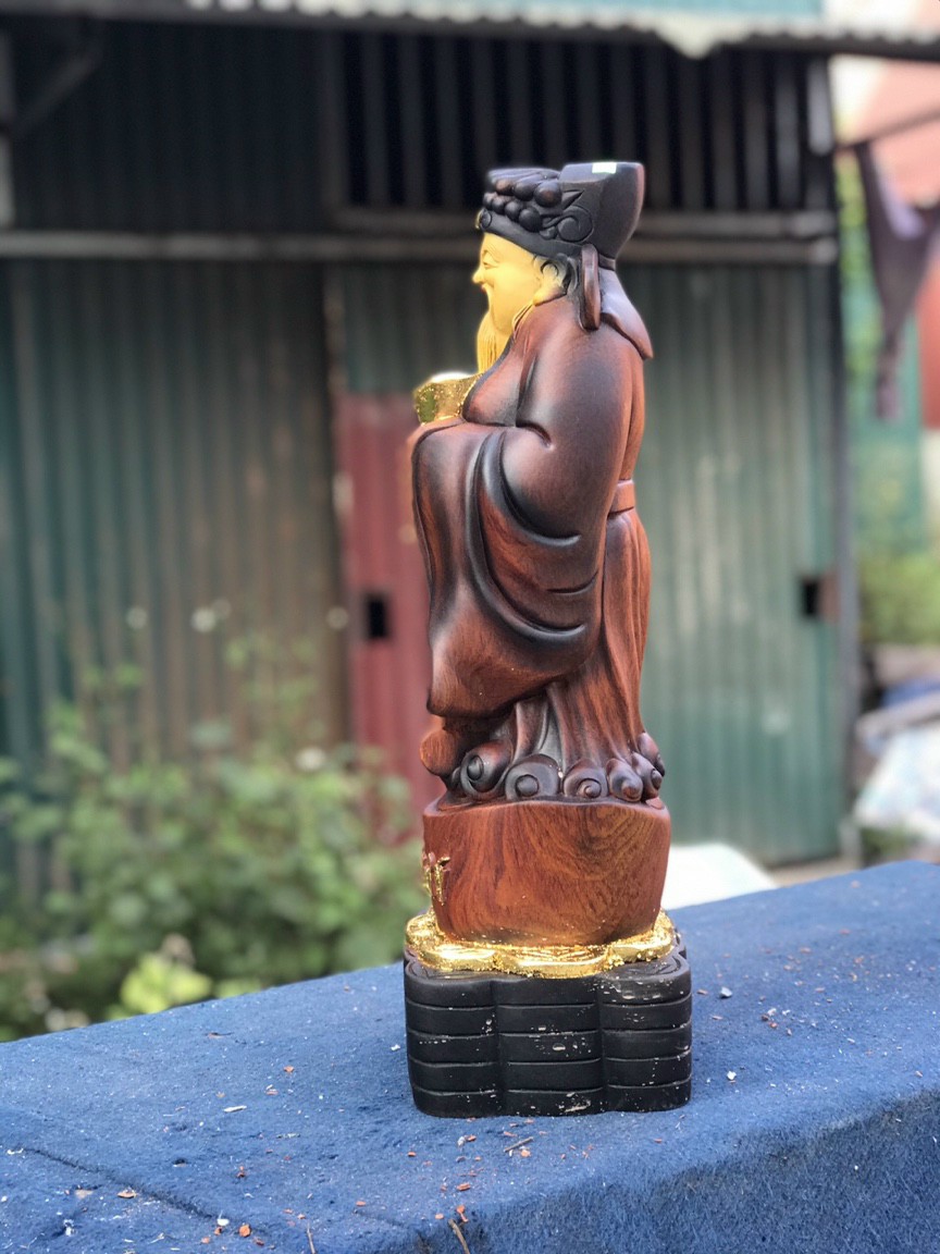 ✨Tượng phật ông thần tài trạm khắc bằng gỗ hương đá tô làm mầu giả cổ kt cao 50×18×15cm