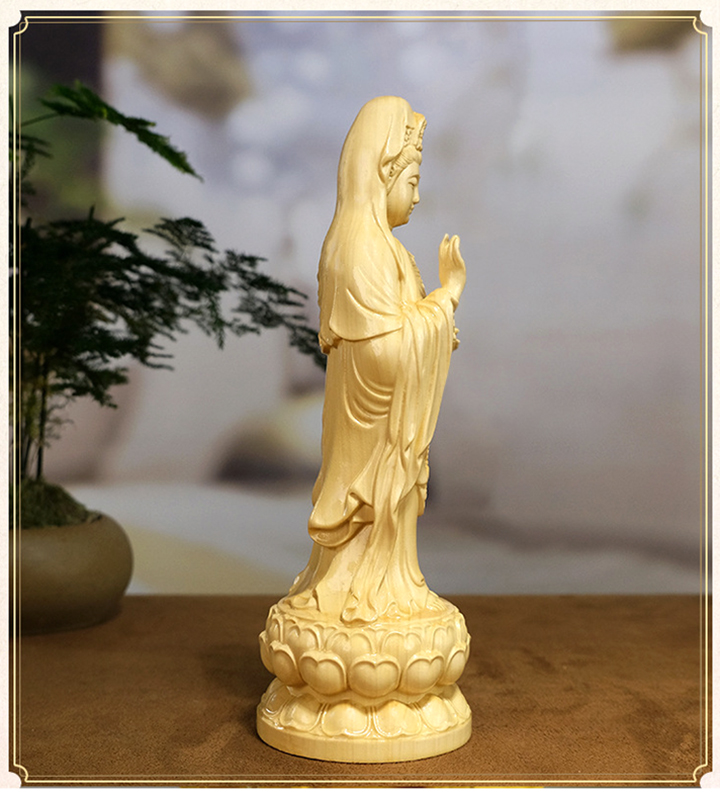 ✨Tượng Phật Quan Âm Như Ý đứng bằng gỗ Hoàng Dương MSPC210 (cao 21 cm)