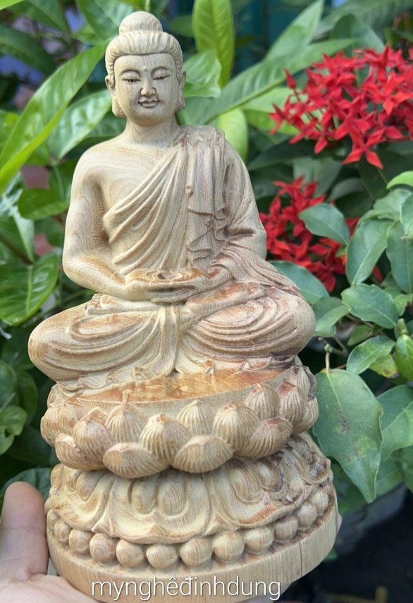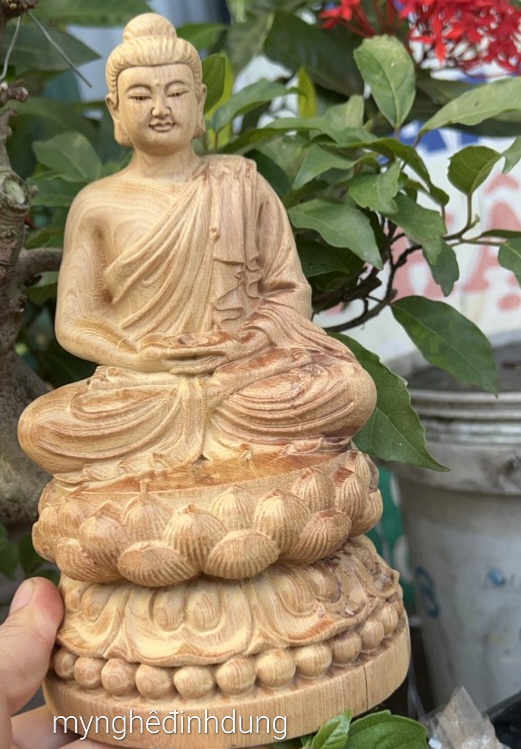 Tượng phật thích ca cao 15cm và 20cm làm bằng gỗ bách xanh nguyên khối
