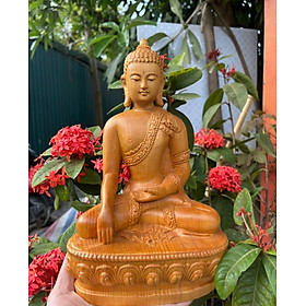 Mua tại Tiktok_ Tượng phật thích ca phái nam tông được làm bằng chất liệu gỗ pơ mu liền khối tự nhiên 100%