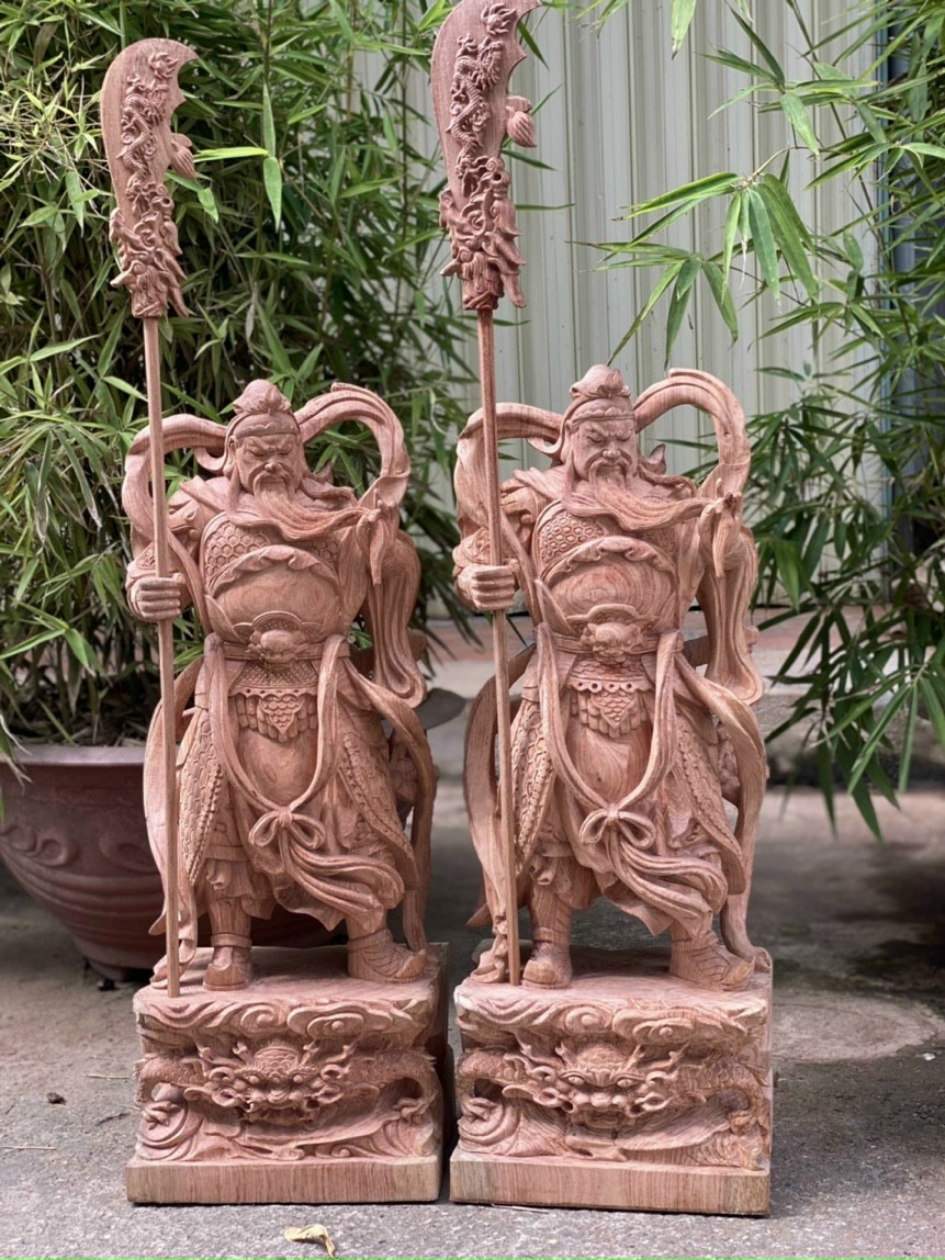 Tượng Quan Công đứng cầm đao cao 80cm | Quan Thánh gỗ hương đứng trấn ải