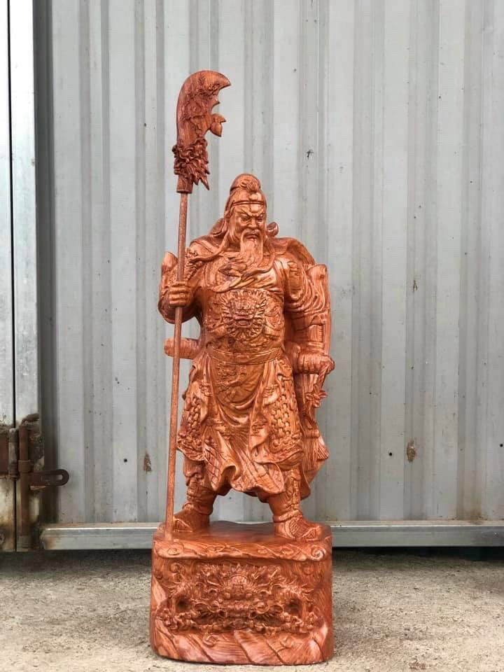 Tượng Quan Công đứng cầm đao cao 80cm | Quan Thánh gỗ hương đứng trấn ải