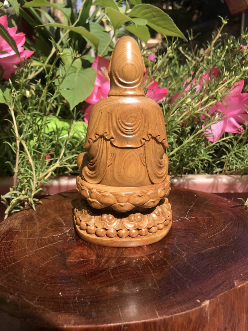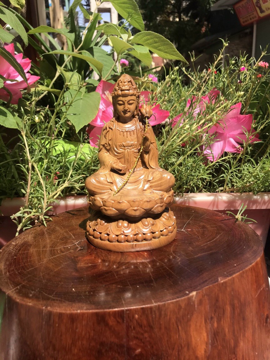 được làm bằng chất liệu gỗ bách xanh liền khối tự nhiên 100% _ Kt cao 15×9×9cm  _ Tượng được chạm khắc gọt tỉa vô cùng ti mi tinh xảo kỳ công .Đi hầu hết