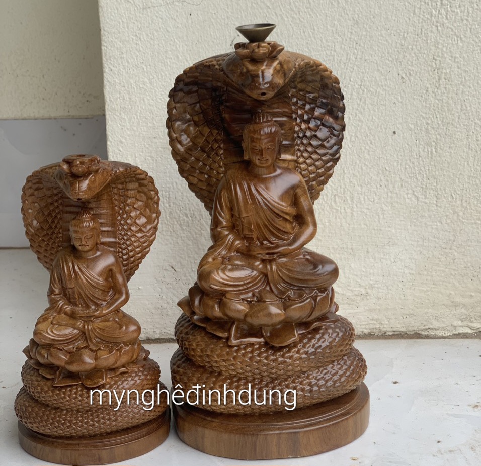_ Tượng thần rắn bảo vệ Đức Phật được làm bắng chất liệu gỗ bách xanh liền khối tự nhiên 100%