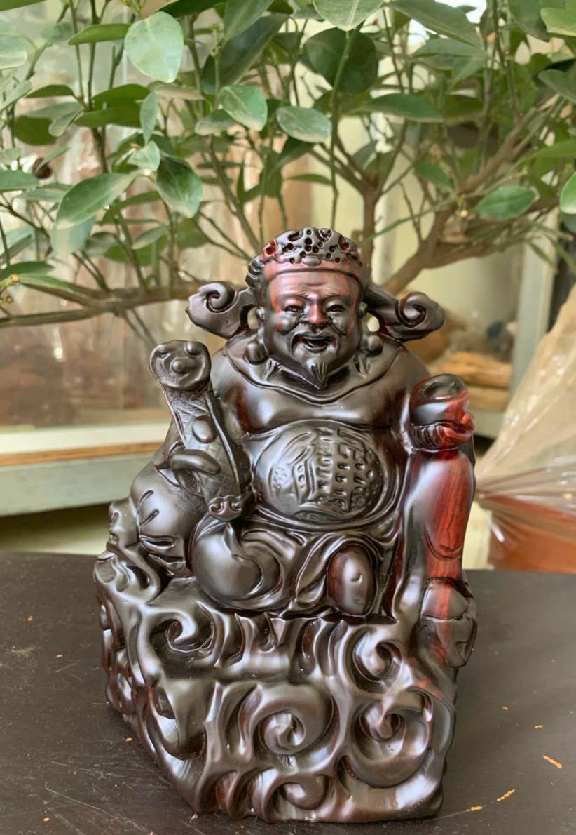 ✨Tượng thần tài bằng gỗ trắc đỏ đen kt 15×13×8cm