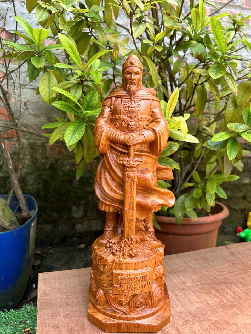 _Tượng trần quốc tuấn ,một nhà quân sự nỗi lạc được làm bằng chất liệu gỗ bách xanh thơm nức tự nhiên 100% _ Kích thước cao 50×16×15cm _ Tượng trần quốc tuấn được làm