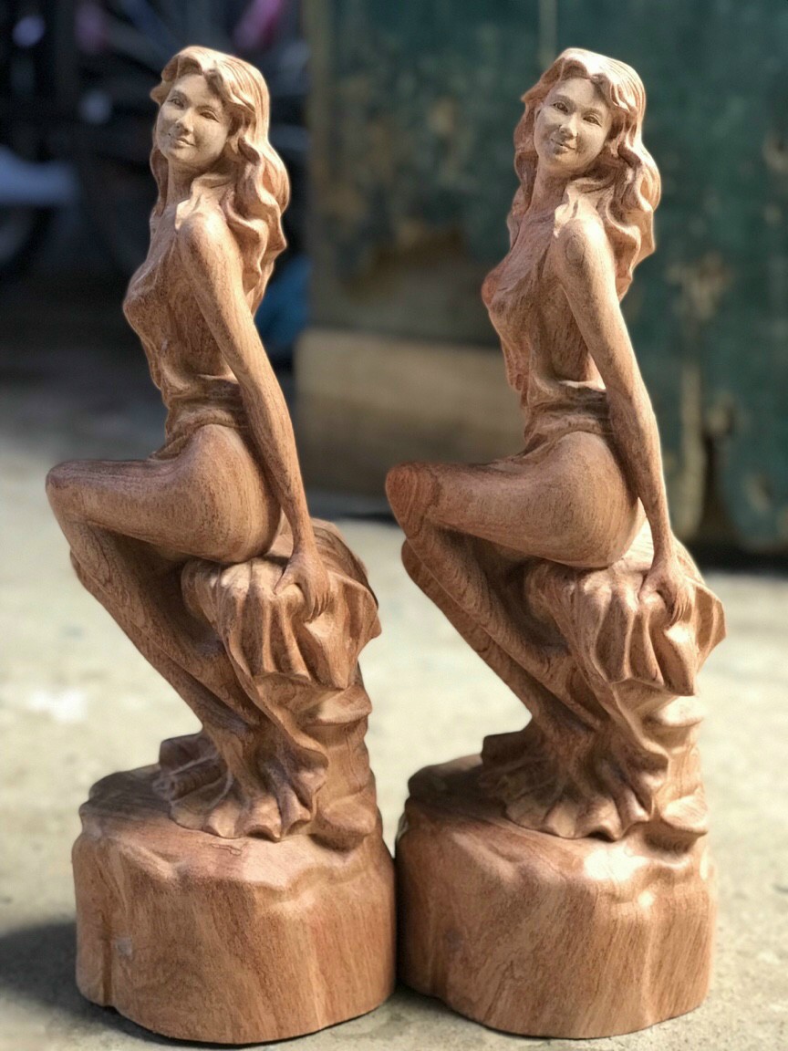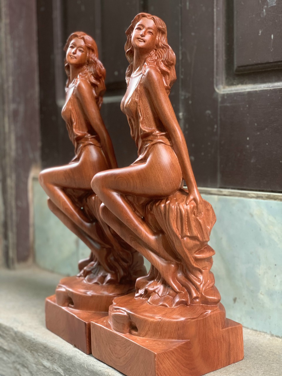 _ Tượng thiếu nữ nghệ thuật được làm bằng chất liệu gỗ hương đá hay gỗ hoàng dương tự nhiên 100%