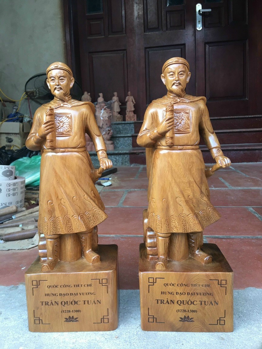 _Tượng điêu khắc trần quốc tuấn được làm bằng chất liệu gỗ bách xanh xanh thơm nức tự nhiên 100%