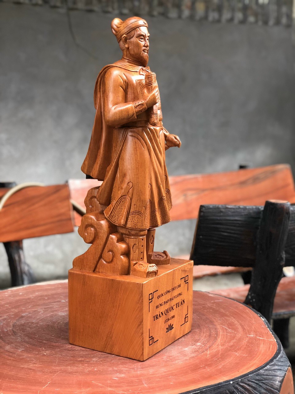 _ Tượng trần quốc tuấn ,trần hưng đạo vương 1 nhà quân sự lỗi lạc được làm bằng chất liệu gỗ hương tự nhiên 100% _ Kích thước cao 60 ngang 22 sâu 15cm _