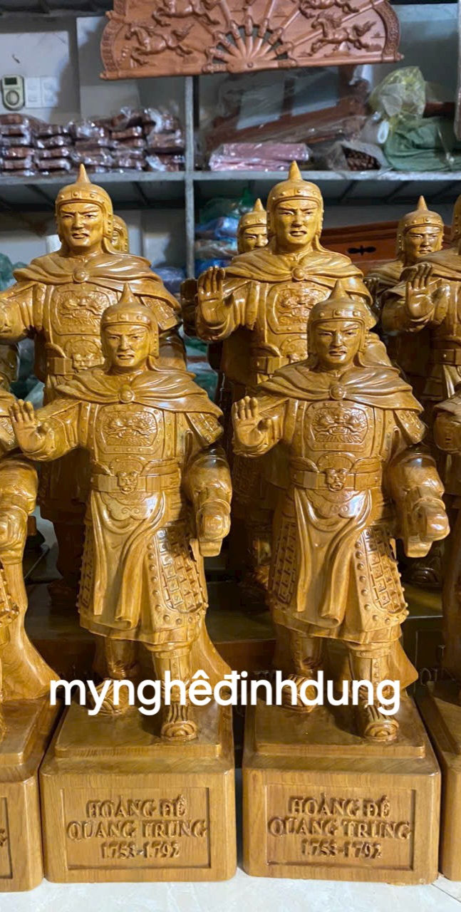 Mua tại TiktokTượng vua hoàng đế quang trung được làm bằng chất liệu gỗ bách xanh liền khối tự nhiên 100% Kt cao 40x13x11cm _ Tượng được chạm khắc vô cùng tỉ mỉ tinh xảo kỳ công. ĐI HẦU tất cả mọi chi tiết góc ngách nội dung hoa văn của Tượng đều được gọt tỉa chỉnh sửa sắc nét hoàn toàn bằng tay thủ công truyền thống.