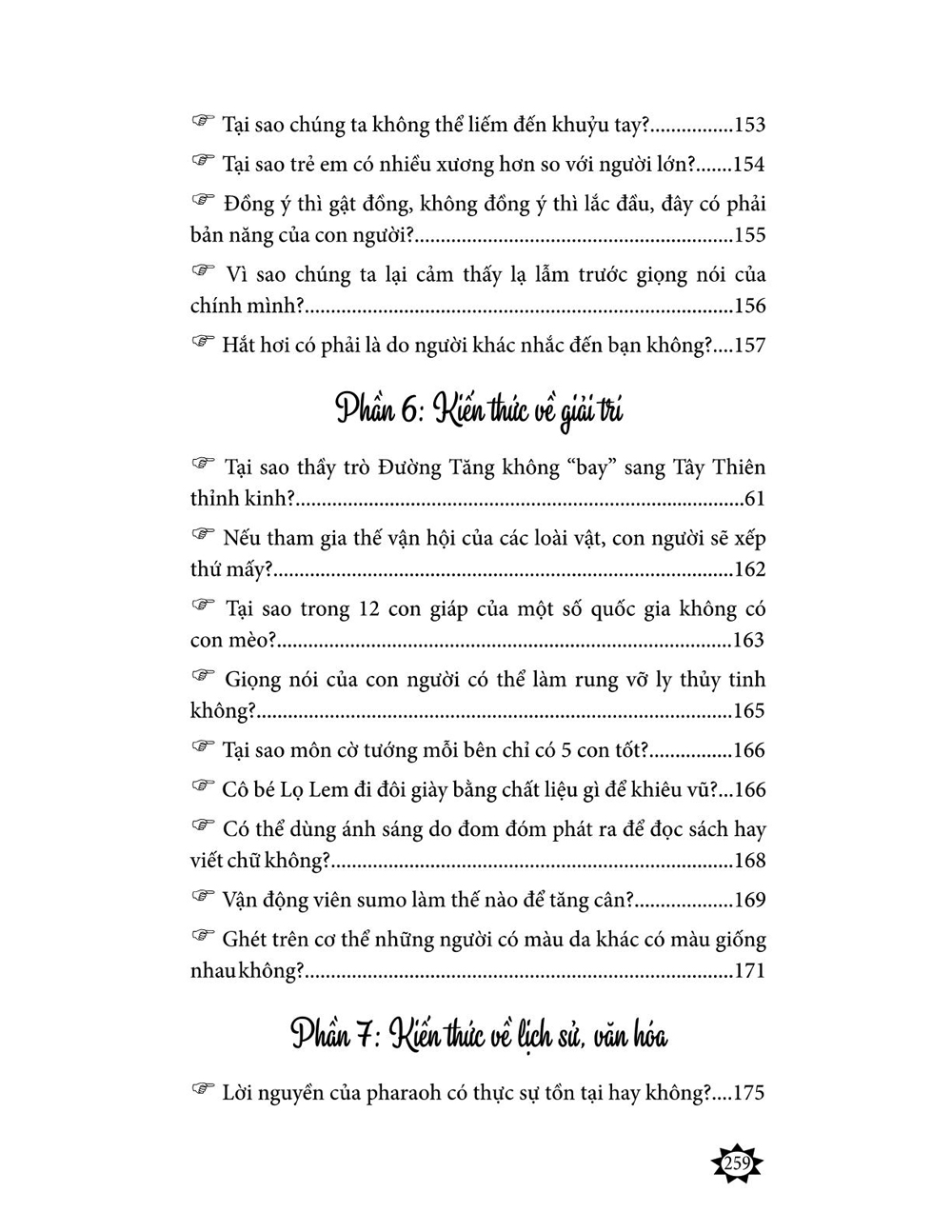 Sách cung cấp các kiến thức về cuộc sống, sức khỏe, động vật, ẩm thực, cơ thể con người, giải trí, lịch sử, văn hóa, khoa học kỹ thuật, về thế giới…nhằm giúp chúng