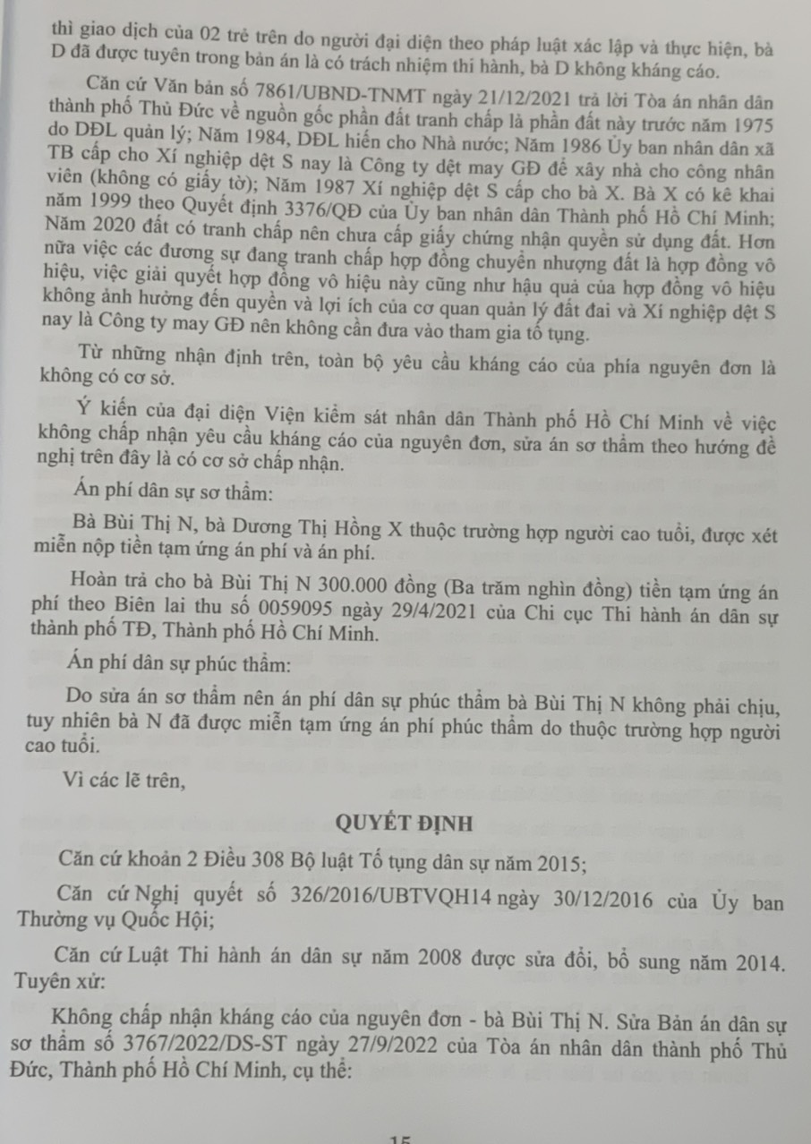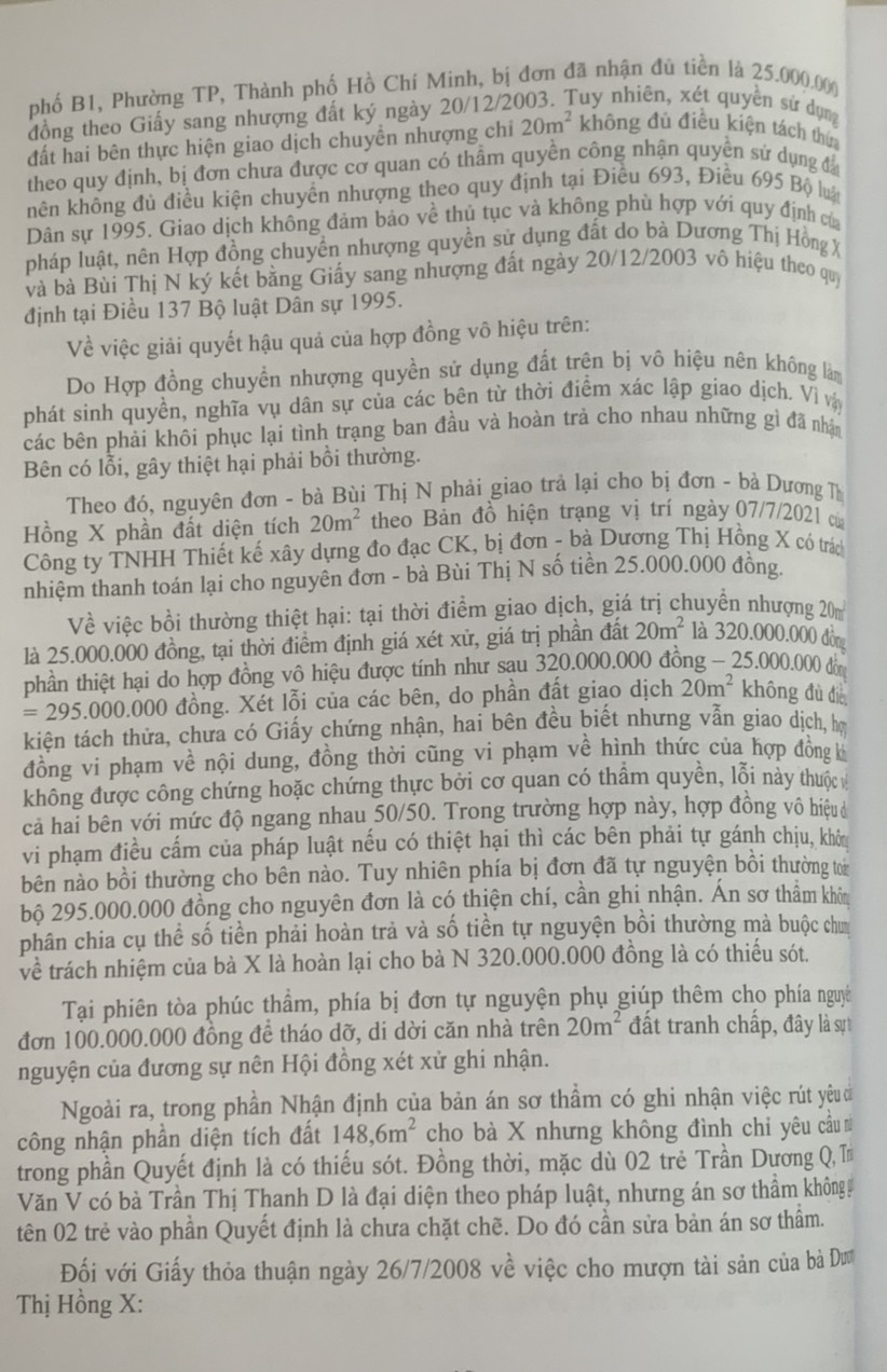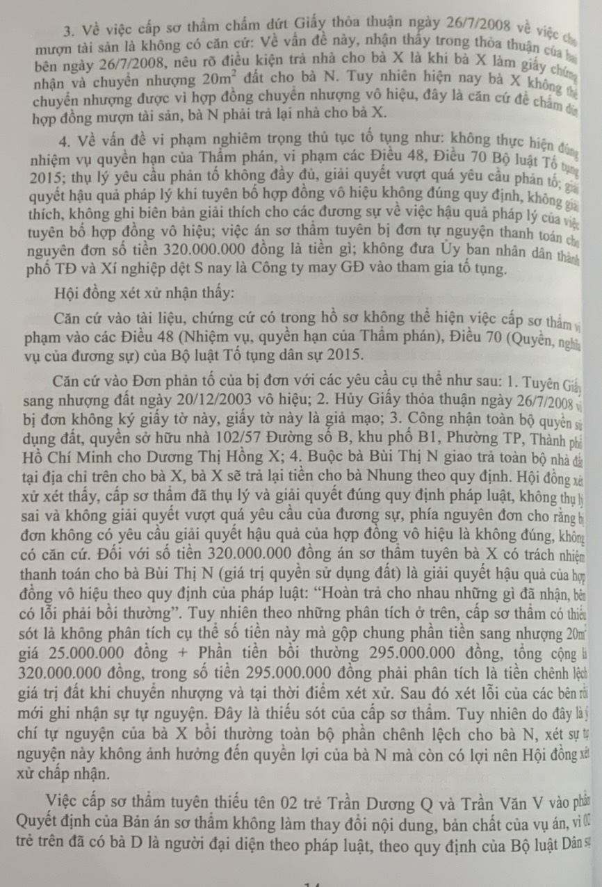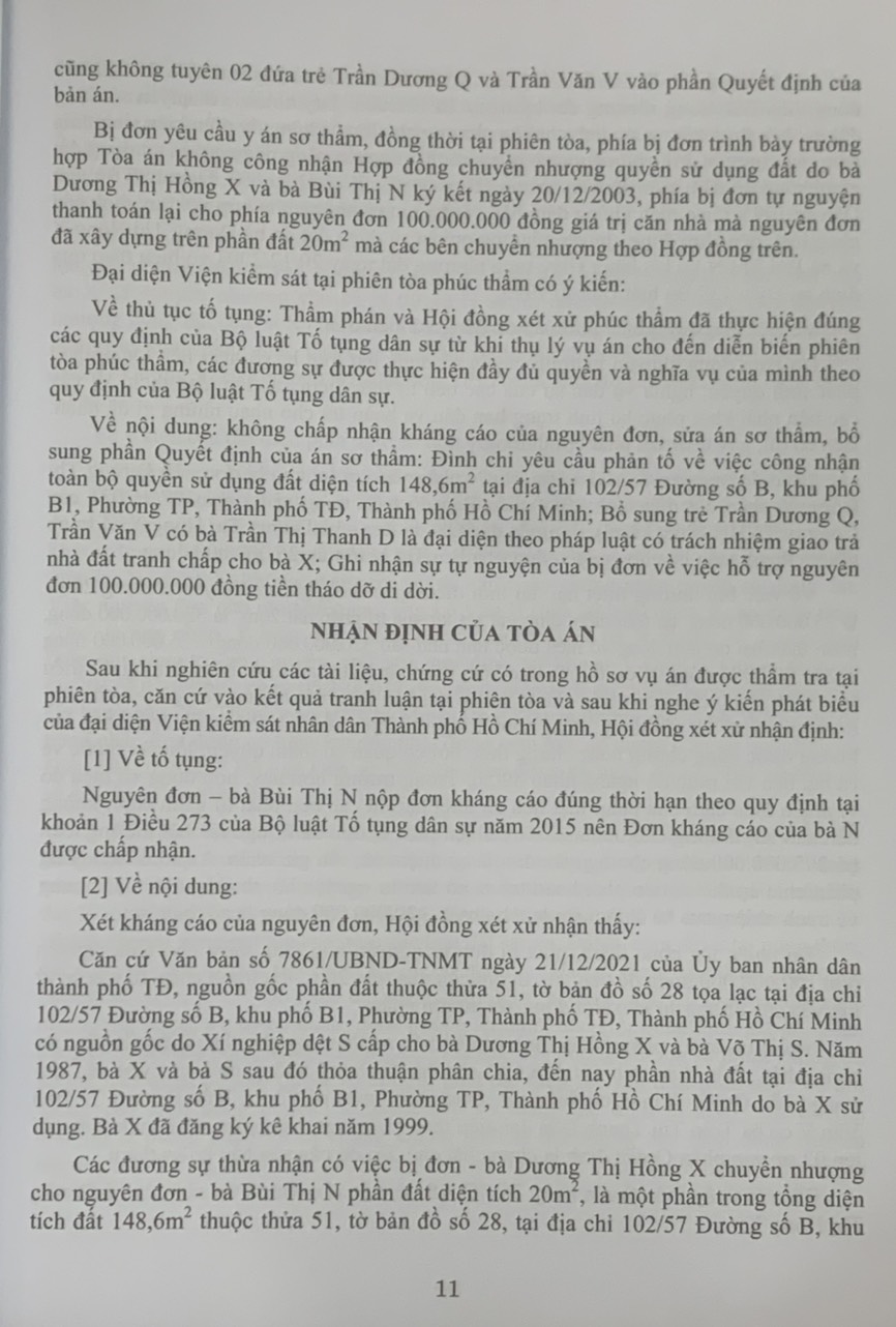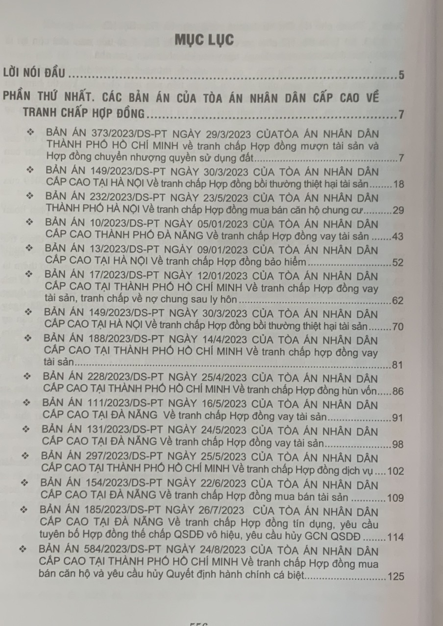 Phần thứ ba. Các Bản án của Tòa án nhân dân cấp cao về quyền sở hữu tài sản Hy vọng rằng đây sẽ là tài liệu hữu ích để bạn đọc, đặc biệt là Thẩm phán, Thẩm tra viên, Hội thẩm, Kiểm sát viên, Luật sư và các học viên tư pháp và những người làm công tác pháp luật nghiên cứu, áp dụng trong thực tiễn xét xử.