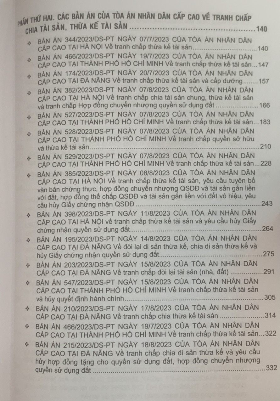 Phần thứ hai. Các Bản án của Tòa án nhân dân cấp cao về tranh chấp chia tài sản, thừa kế tài sản