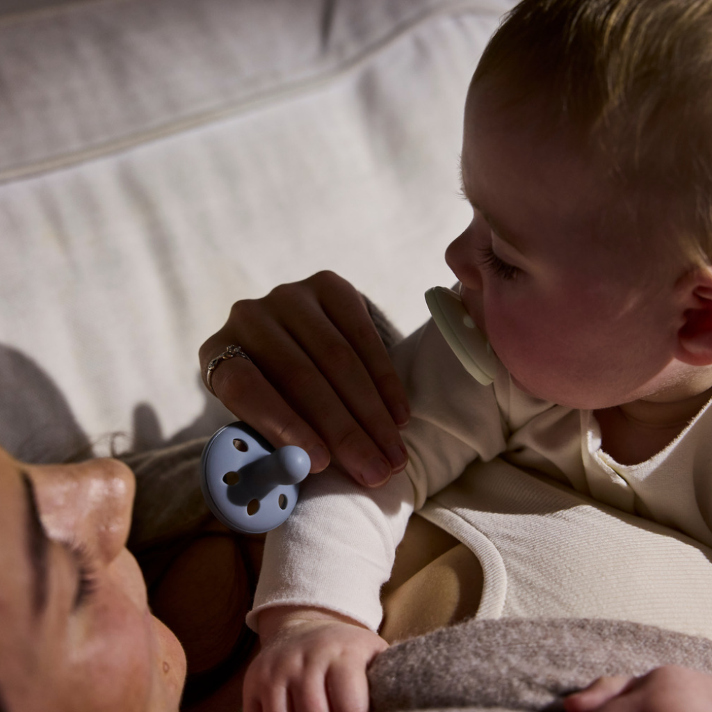 Mẹ có thể gắn ty ngậm mô phỏng ti mẹ này vào áo của bé một cách an toàn. Mẹ có thể yên tâm rằng ty ngậm sẽ không bị thất lạc, luôn sạch sẽ, và sẵn sàng dùng để xoa dịu bé khi cần thiết.