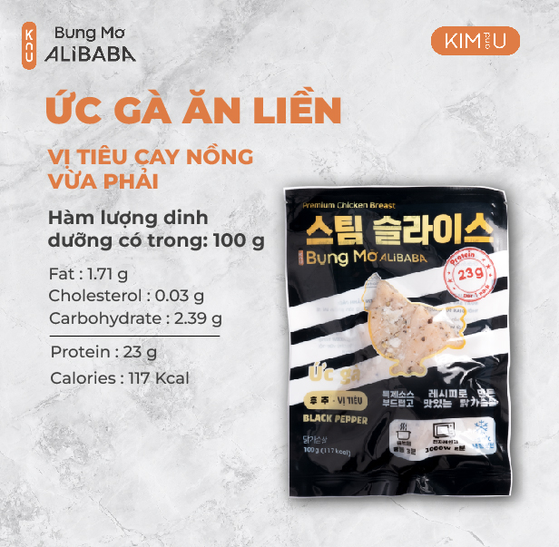 Với sản phẩm tươi sống, trọng lượng thực tế có thể chênh lệch khoảng 10%. Vị ngọt của gà hoà quyện với hương vị cay nồng của tiêu, đưa bạn quay về ký ức bên mâm cơm thân thuộc của mẹ. Vị cay của tiêu được điều chỉnh vừa phải giúp món ăn vừa dễ ăn nhưng vẫn giữ được mùi thơm đặc trưng, lưu lại trên đầu vị giác. Chỉ cần 2 phút mở gói và hâm nóng ức gà đã được cắt lát và nêm nếm sẵn là bạn đã thưởng thức bữa ăn lành ngon, tiện lợi. Thịt gà vẫn tươi nhờ giữ được độ mềm thơm đậm vị trong từng thớ thịt vẹn nguyên dưỡng chất. Nhờ có hàm lượng protein cao, ít chất béo và không tinh bột, ức gà ăn liền KimandYou giúp xây dựng cơ bắp chắc khoẻ và đẩy nhanh quá trình đốt cháy mỡ thừa. Đây chính là là sự lựa chọn dinh dưỡng số 1 dành cho người đam mê tập thể hình gymer, runner và yoga để sở hữu vóc dáng thon thả, tăng cơ 6 múi." Công dụng sản phẩm: