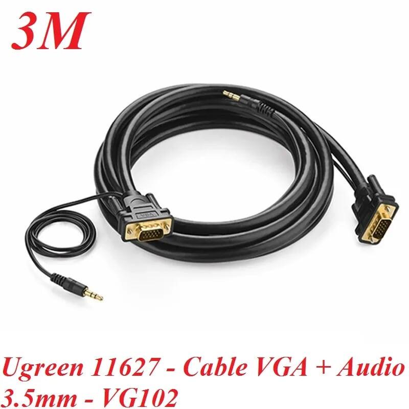 Mua tại TiktokUgreen 11643 Cáp VGA hỗ trợ audio 3.5mm dài 3m Cable VGA + Audio 3.5mm VG102