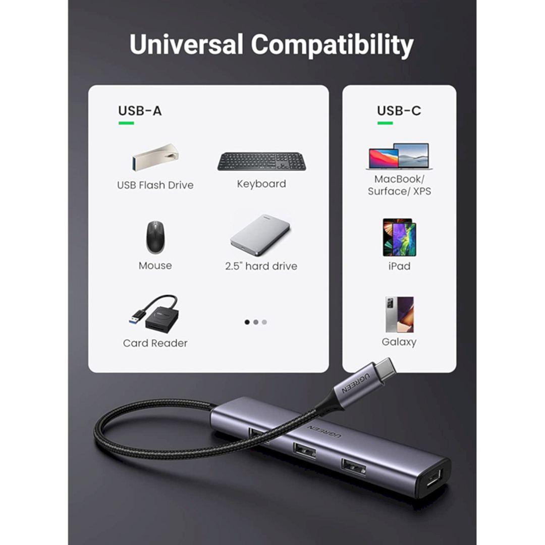 ✨Ugreen UG20841CM473TK 5Gbps vỏ nhôm Bộ chuyển USB-C sang 4 cổng USB 3.0 - HÀNG CHÍNH HÃNG